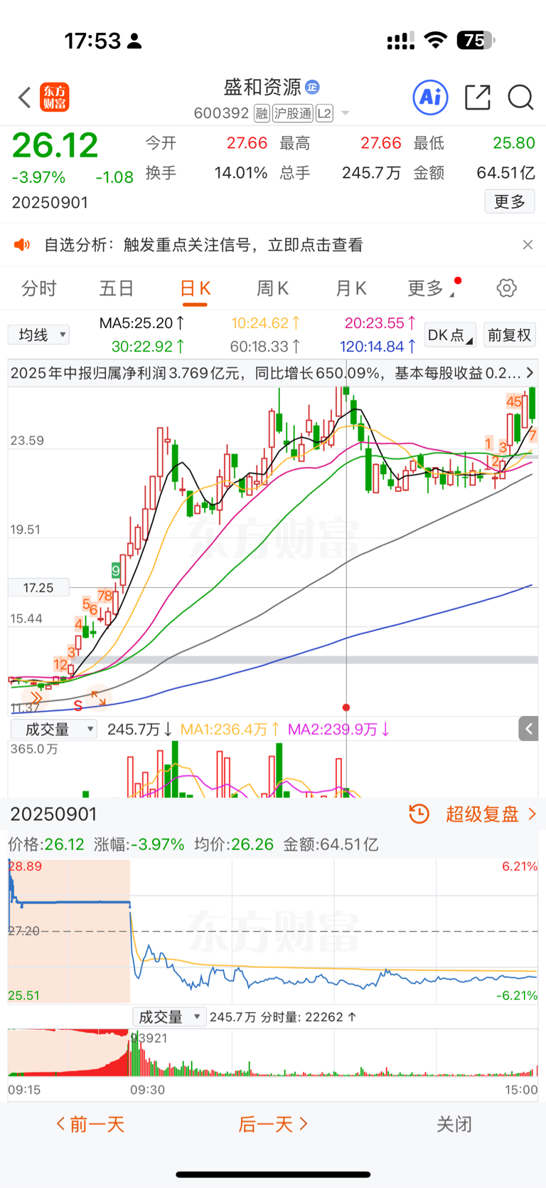 $盛和资源(SH600392)$ 上次中报也是利润增加650%,第二天跌了4个点… 心很虚啊!!明天高开就该跑了!!中报出完利好兑现,一路下跌到20块