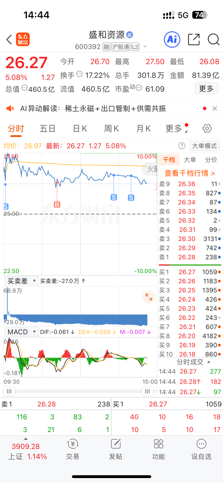 $盛和资源(SH600392)$ 我先撤了,留下的发财!