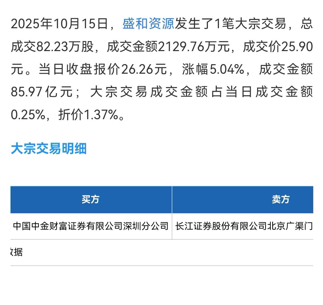今天中央汇金所属中金财富证券公司深圳分公司买入盛和资源82.23万股。