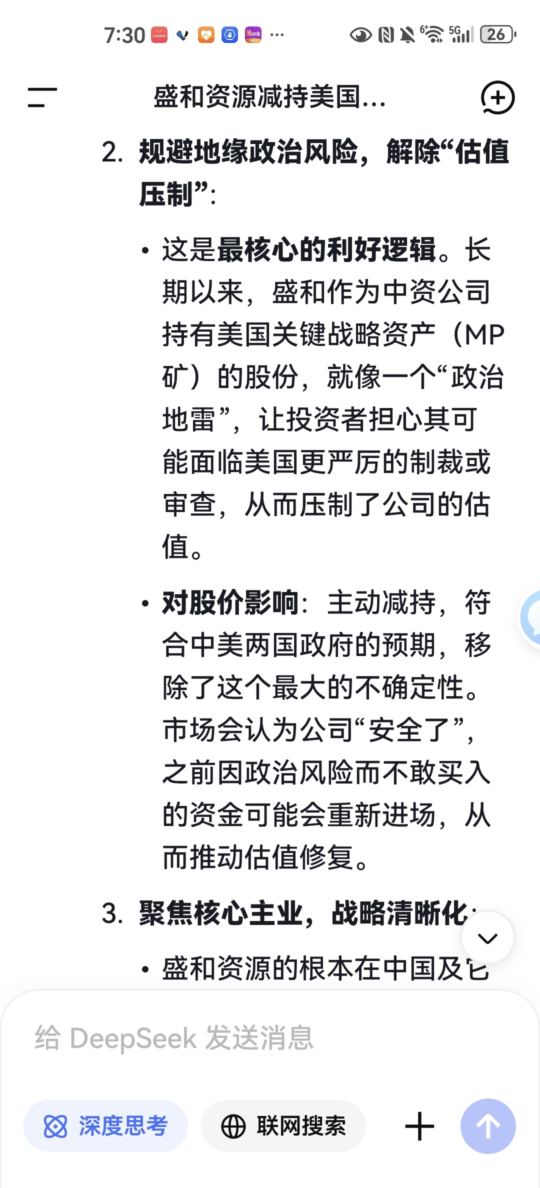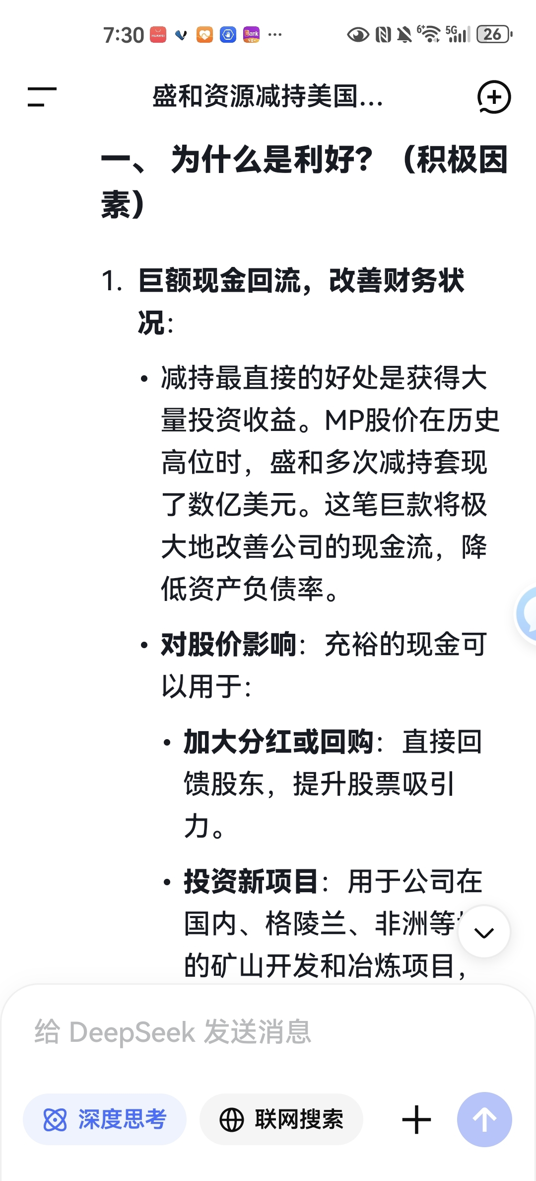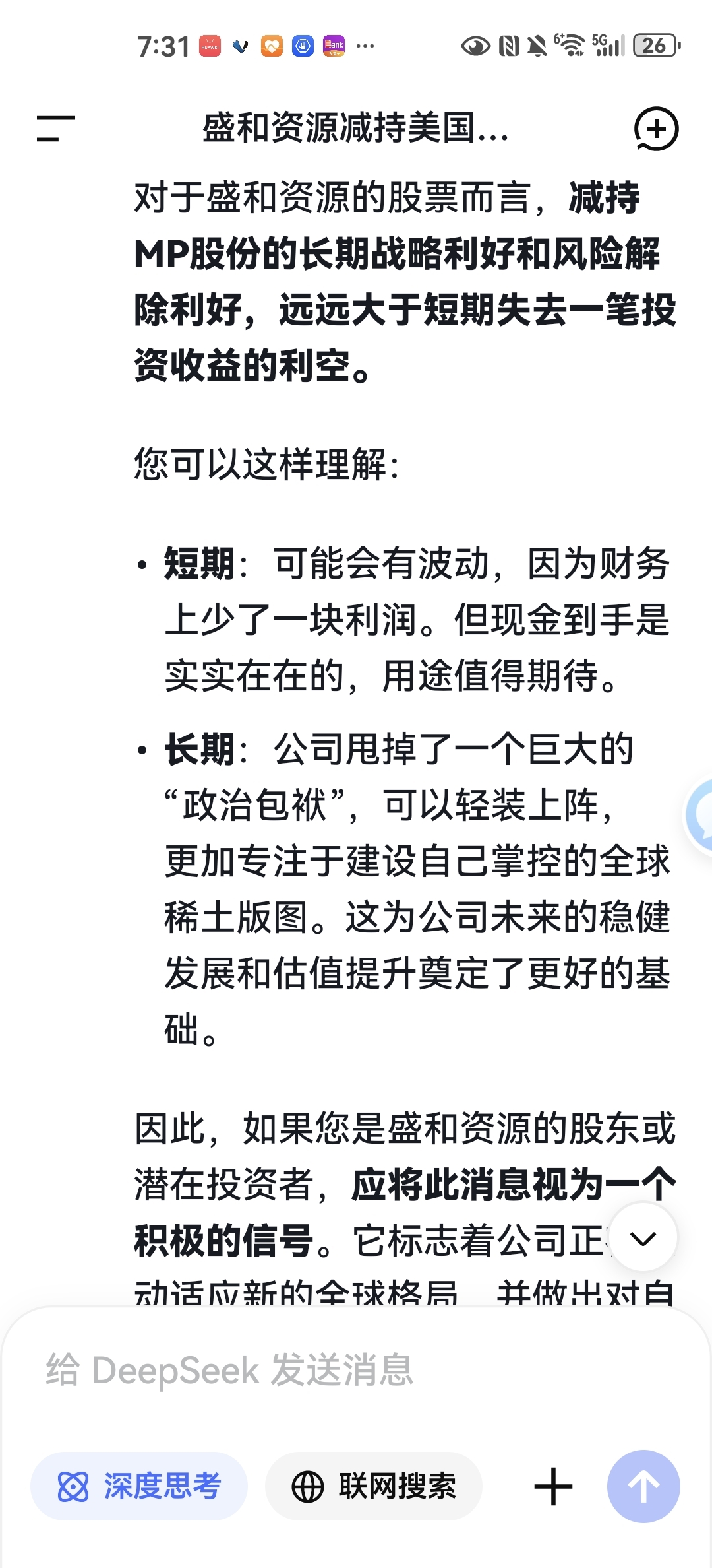 盛和减持美股MP股份绝对是利好,手里现金也多了,虽然分红有点少,明天看高开高走