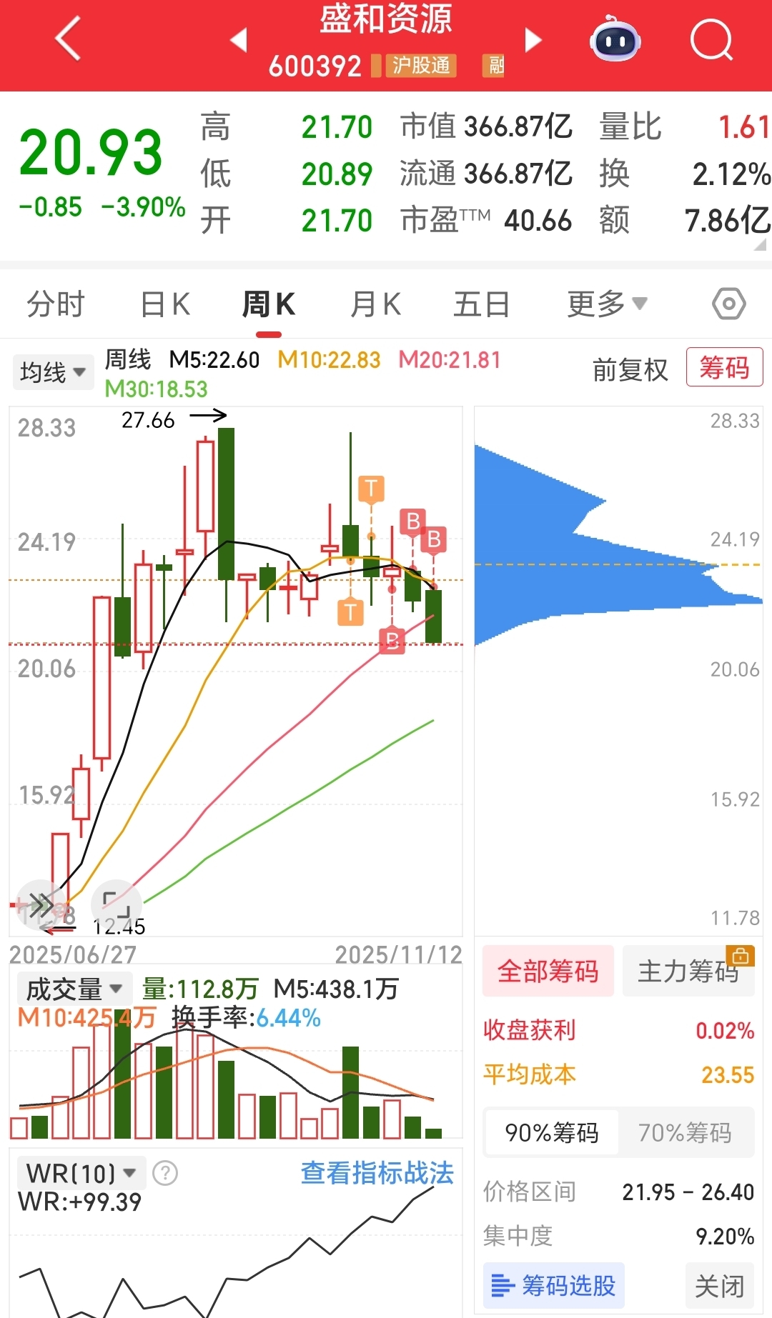 $盛和资源(SH600392)$ 按当前价收盘,只有0.02%的投资者盈利。90%筹码集中度为9.2%,非常集中。