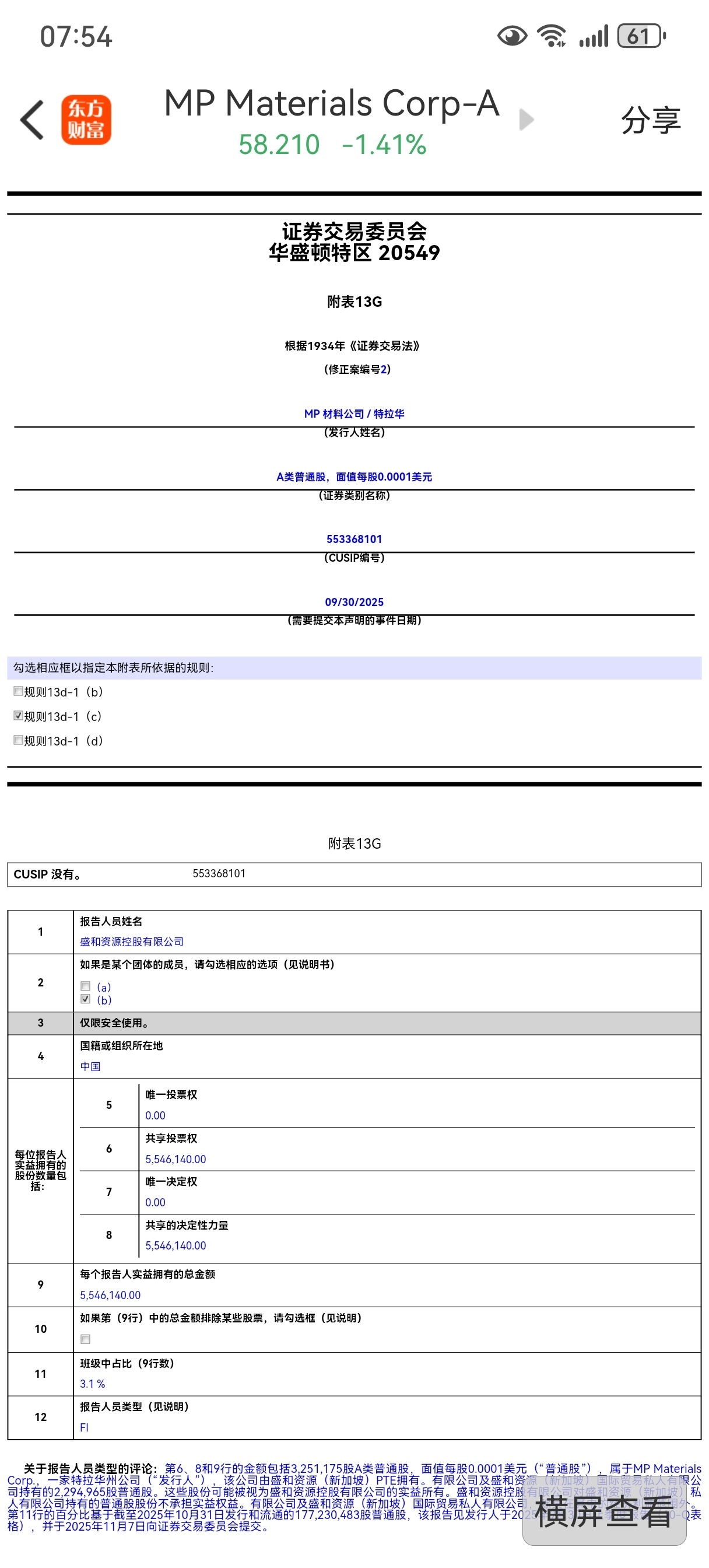$盛和资源(SH600392)$  mp上市时盛和是schedule 13g投资者,持股不超10%减持年度报告即可。