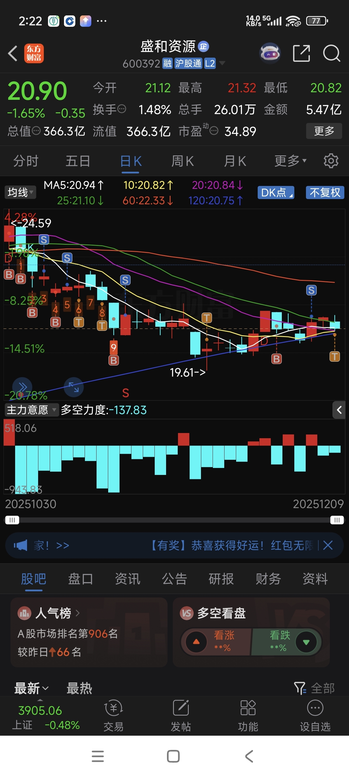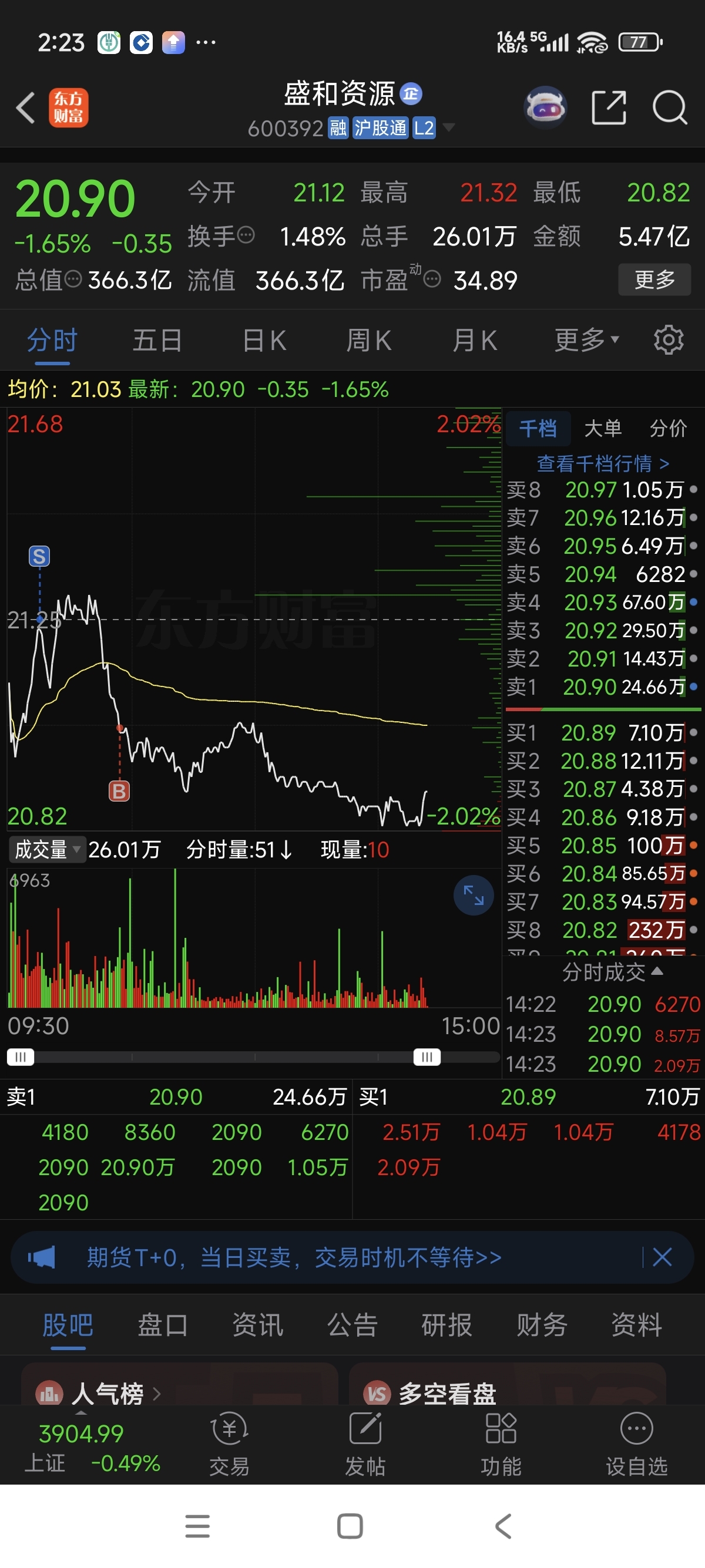 $盛和资源(SH600392)$ 遭套起有点久了,做做t吧,今天终于是先卖后买做了一把t,以前是先买后卖做t,不做t,等解套,不知何年何月……#炒股日记#