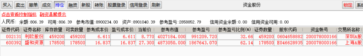 信用账户:23.9卖出那笔,是为了卖出去之后有更多现金担保,这样可以买进更多盛和