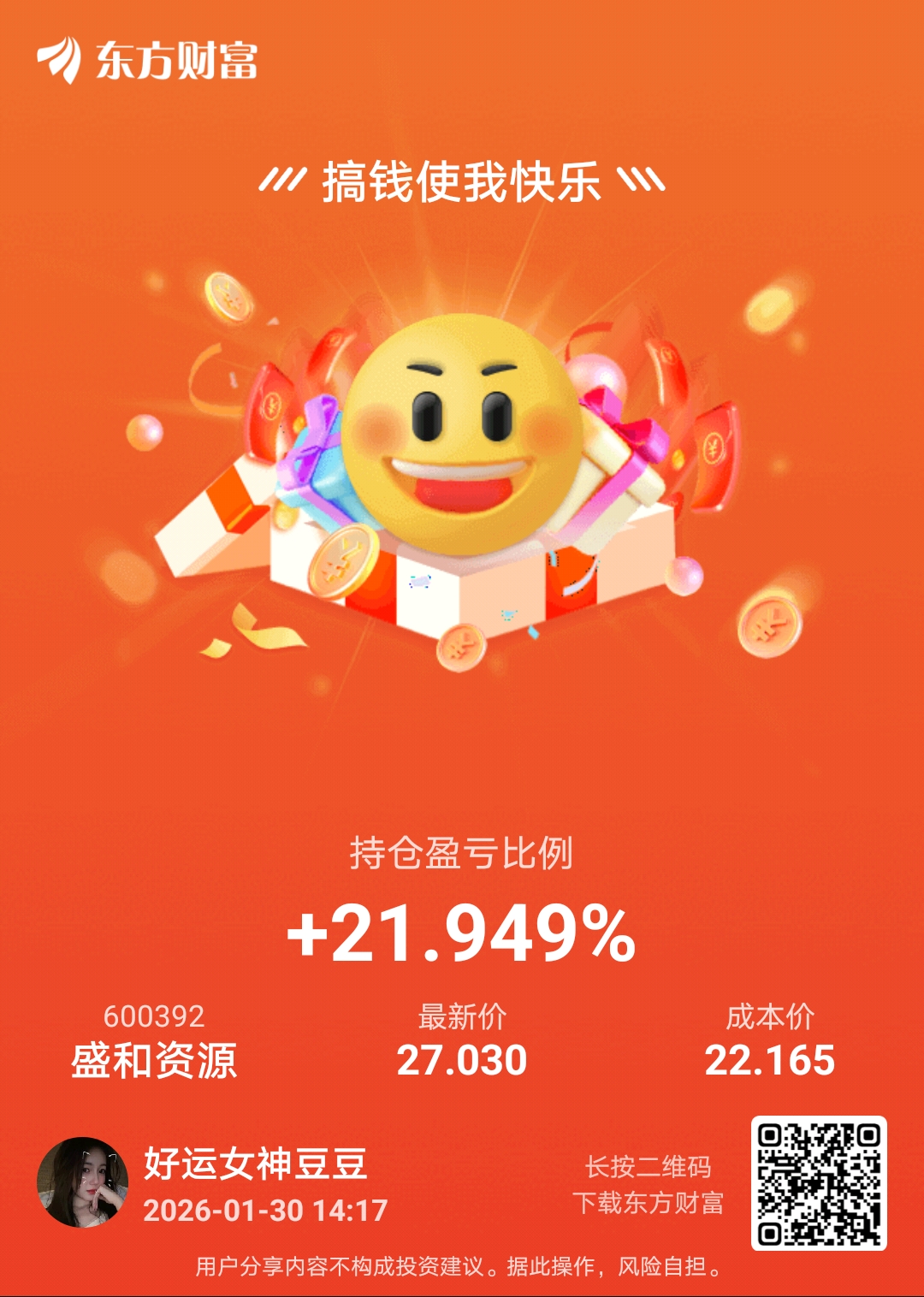 温馨提示: 1.根据《证券法》规定,禁止编造、传播虚假信息或者误导性信息,扰乱证券市场;2.用户在本社区发表的所有资料、言论等仅代表个人观点,与本网站立场无关,不对您构成任何投资建议。用户应基于自己的独立判断,自行决定证券投资并承担相应风险。《东方财富社区管理规定》
