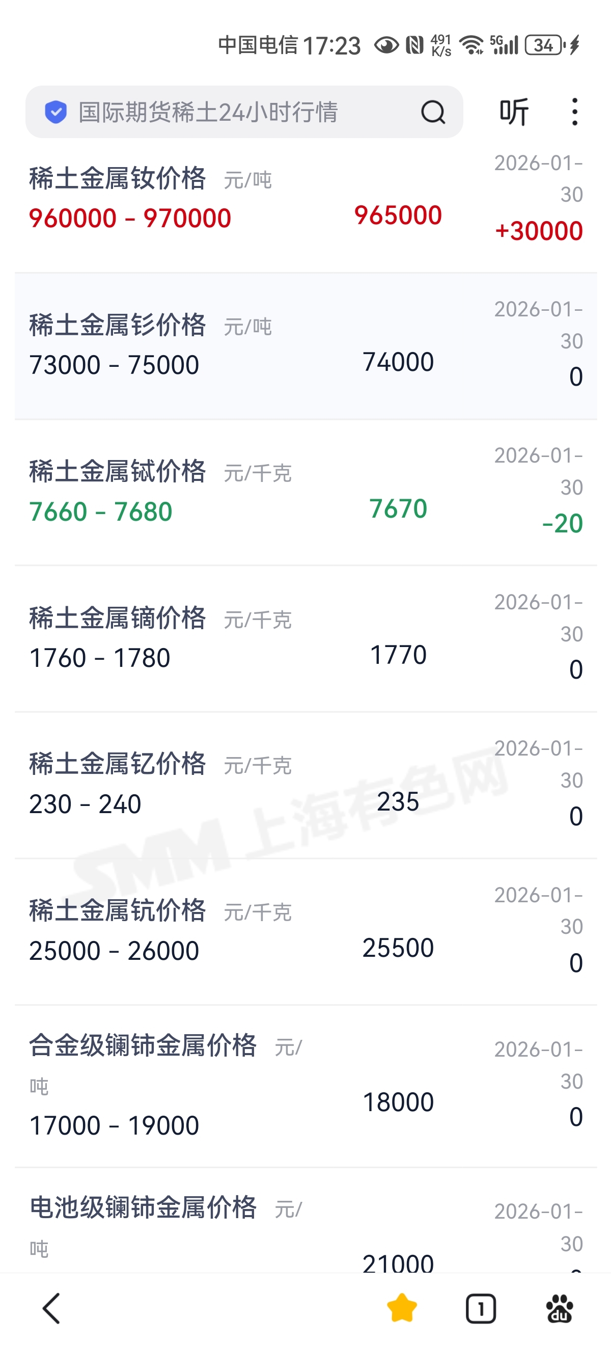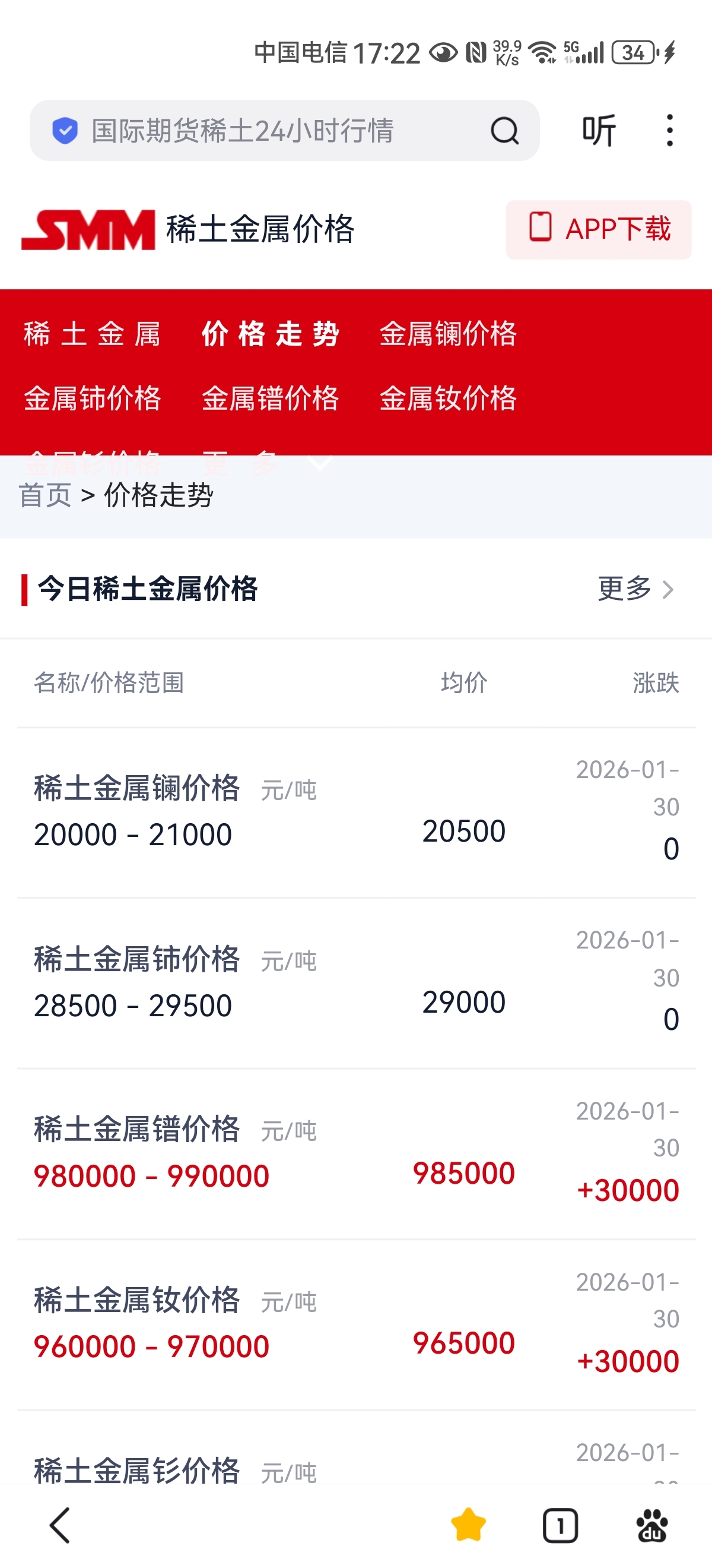 今日稀土价格继续大涨,核心稀土马上突克1000元/克整数关口
