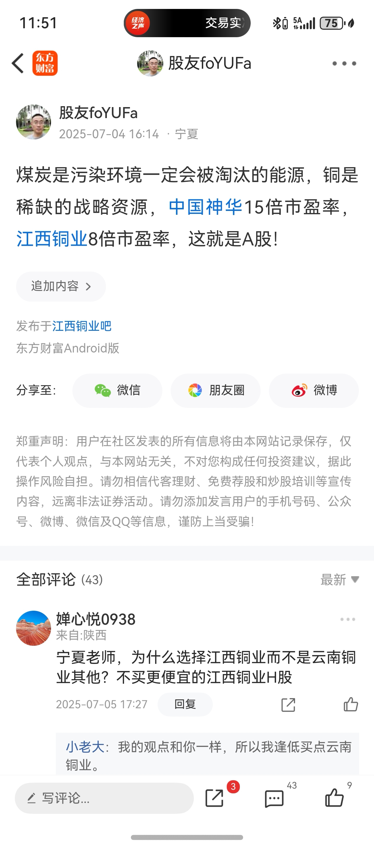 温馨提示: 1.根据《证券法》规定,禁止编造、传播虚假信息或者误导性信息,扰乱证券市场;2.用户在本社区发表的所有资料、言论等仅代表个人观点,与本网站立场无关,不对您构成任何投资建议。用户应基于自己的独立判断,自行决定证券投资并承担相应风险。《东方财富社区管理规定》