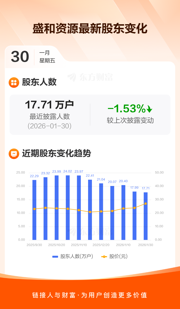 盛和资源:截至1月30日最新股东户数17.71万户,较上期减少1.53%