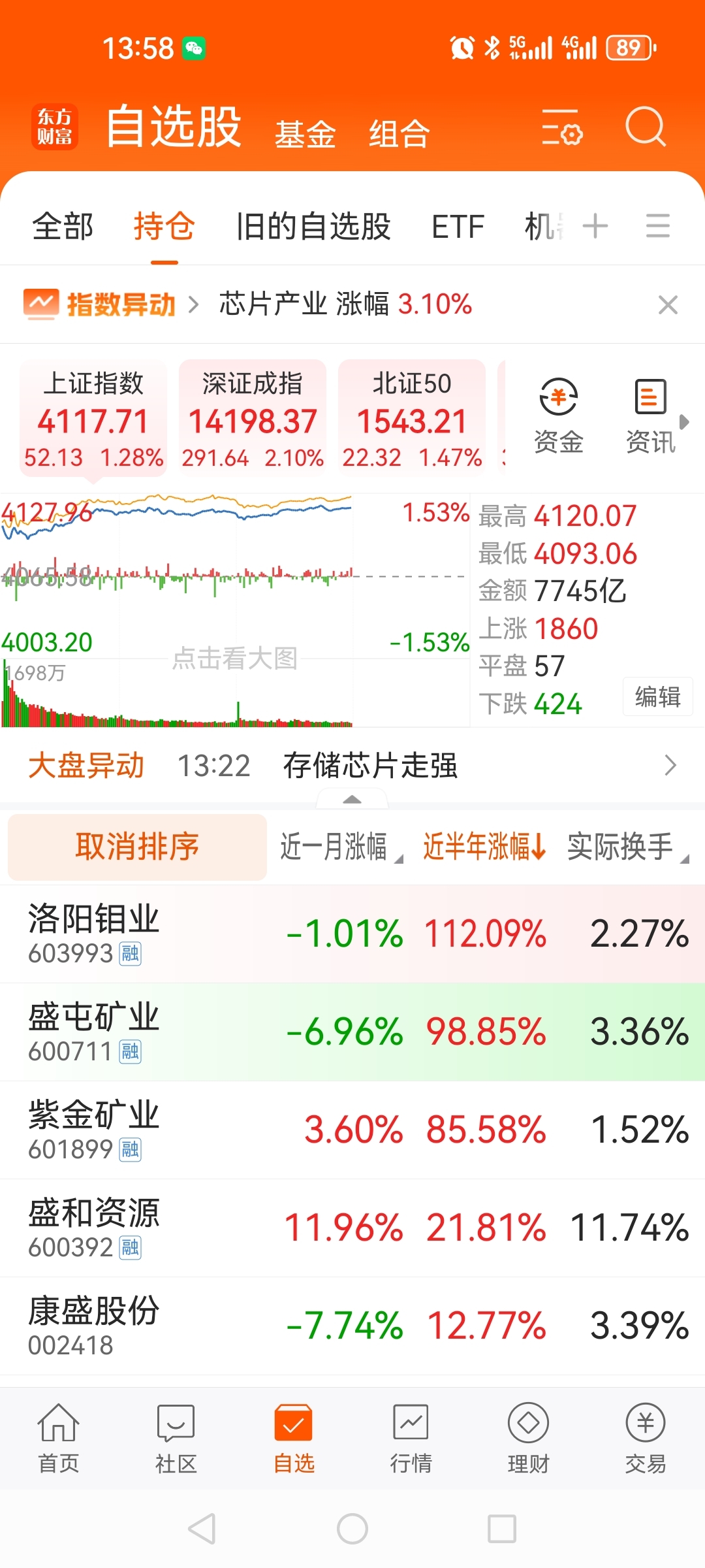 最近半年才涨了20个点了,紫金矿业,洛阳钼业半年都涨了一百多个点了,就算和大盘比