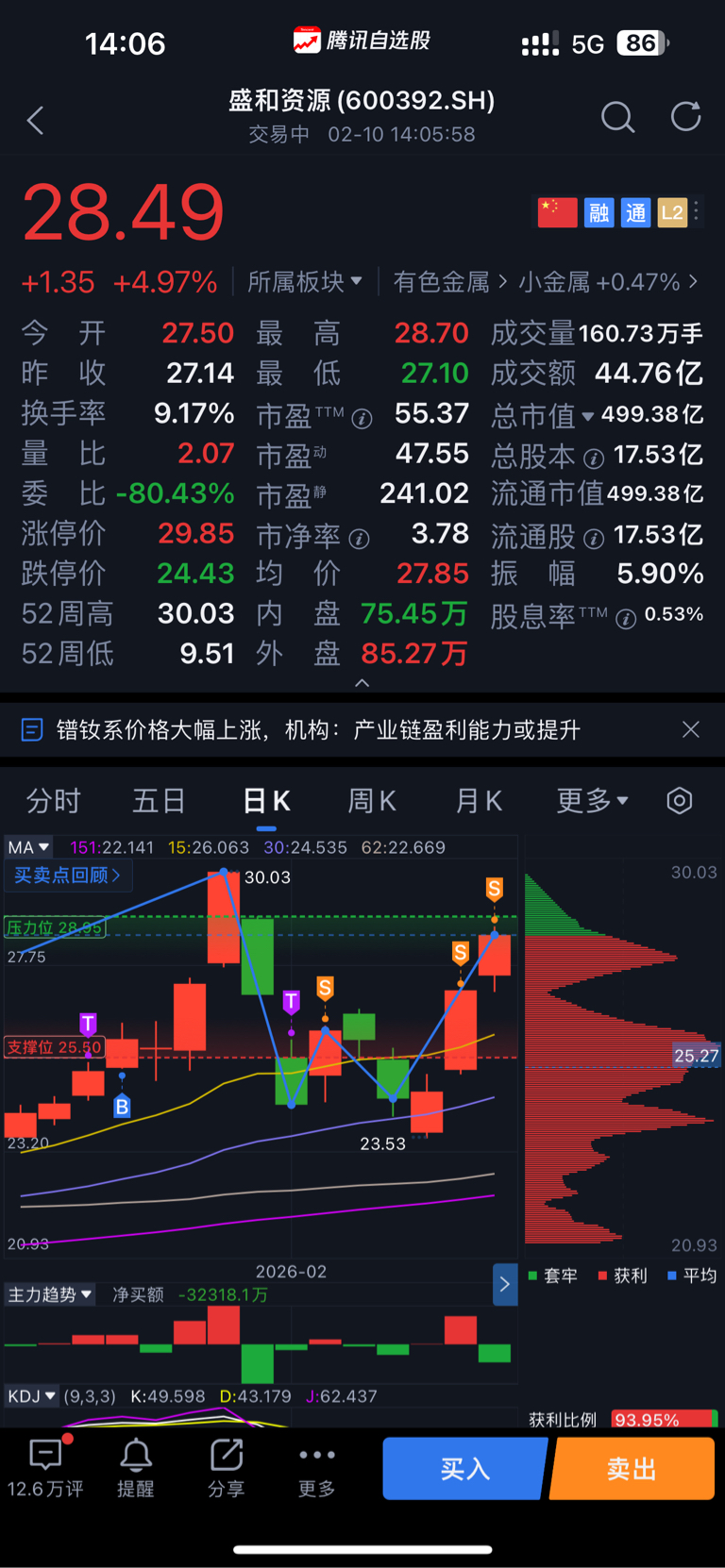 $盛和资源(SH600392)$ 不知道对错反正我到止赢剩下的大家发财吧