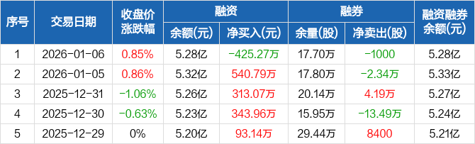 盘江股份:融资净偿还425.27万元,融资余额5.28亿元(01-06)