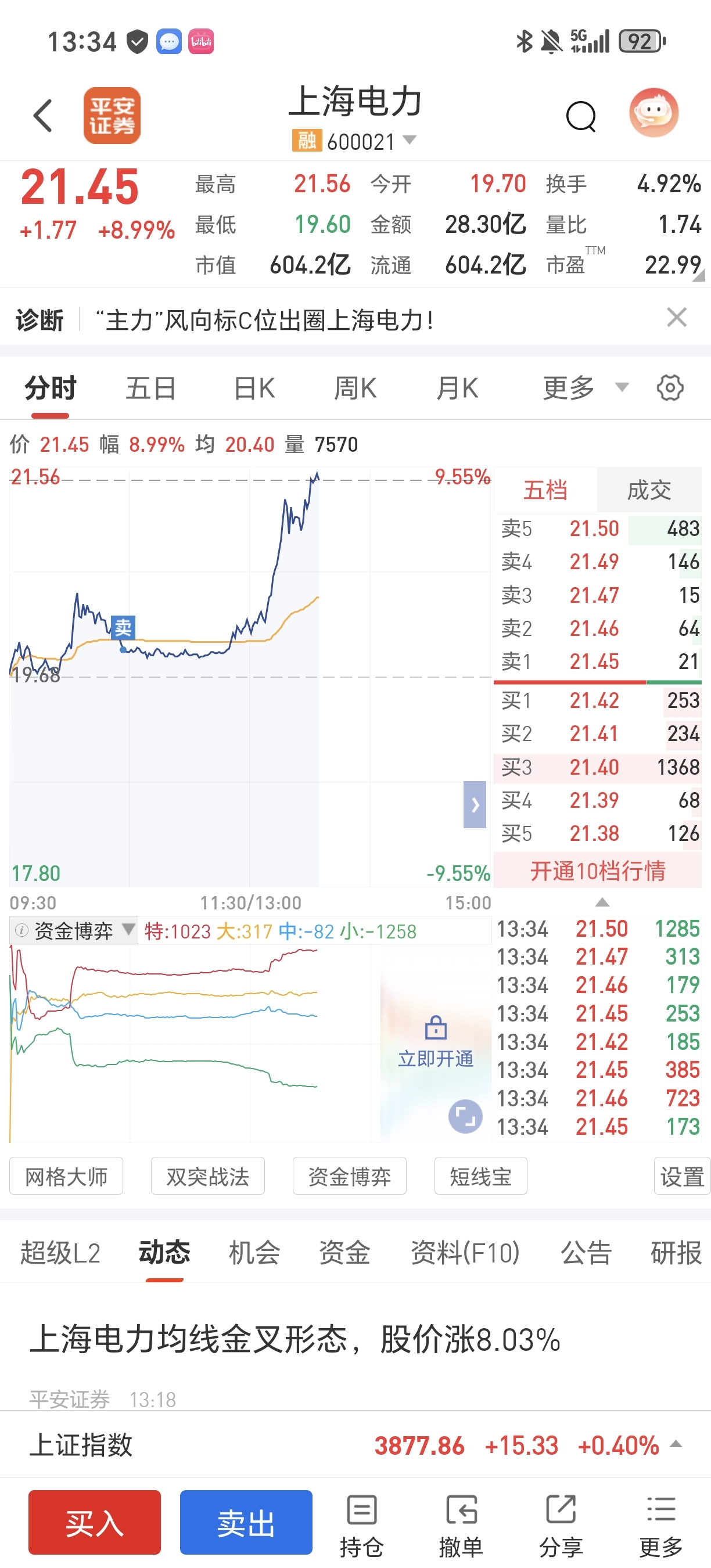 是不一模一样?明天直接涨停?上海电力