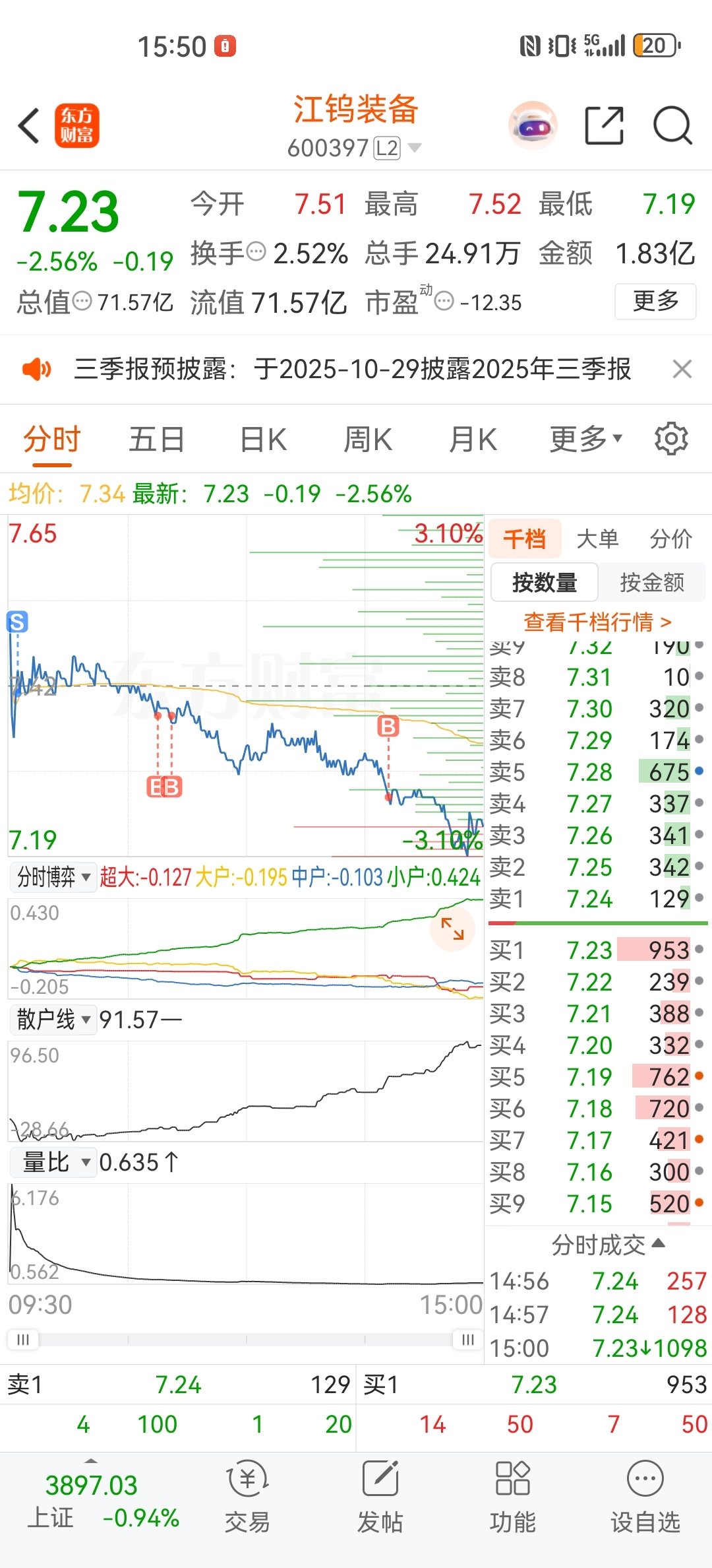 $江钨装备(SH600397)$ 早盘全仓卖,然后接了半仓回来,成本变5.35