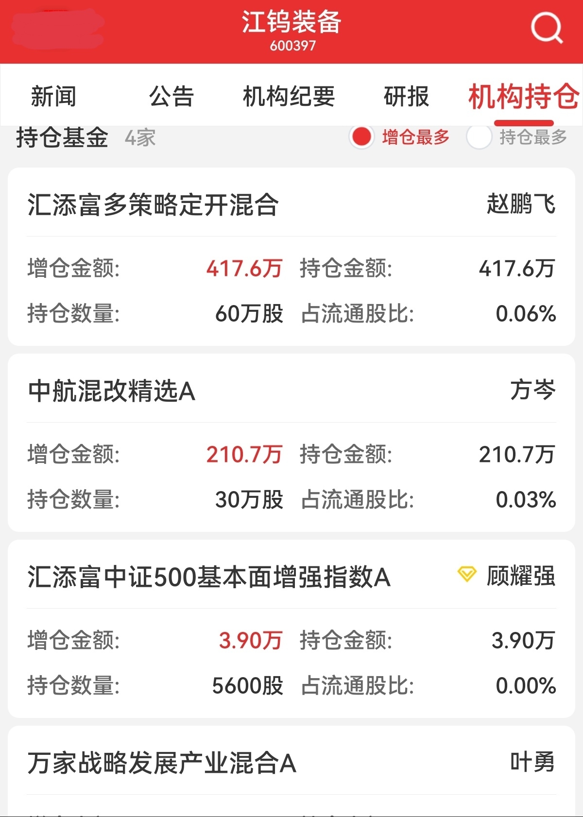 $江钨装备(SH600397)$ 汇添富系列进入。