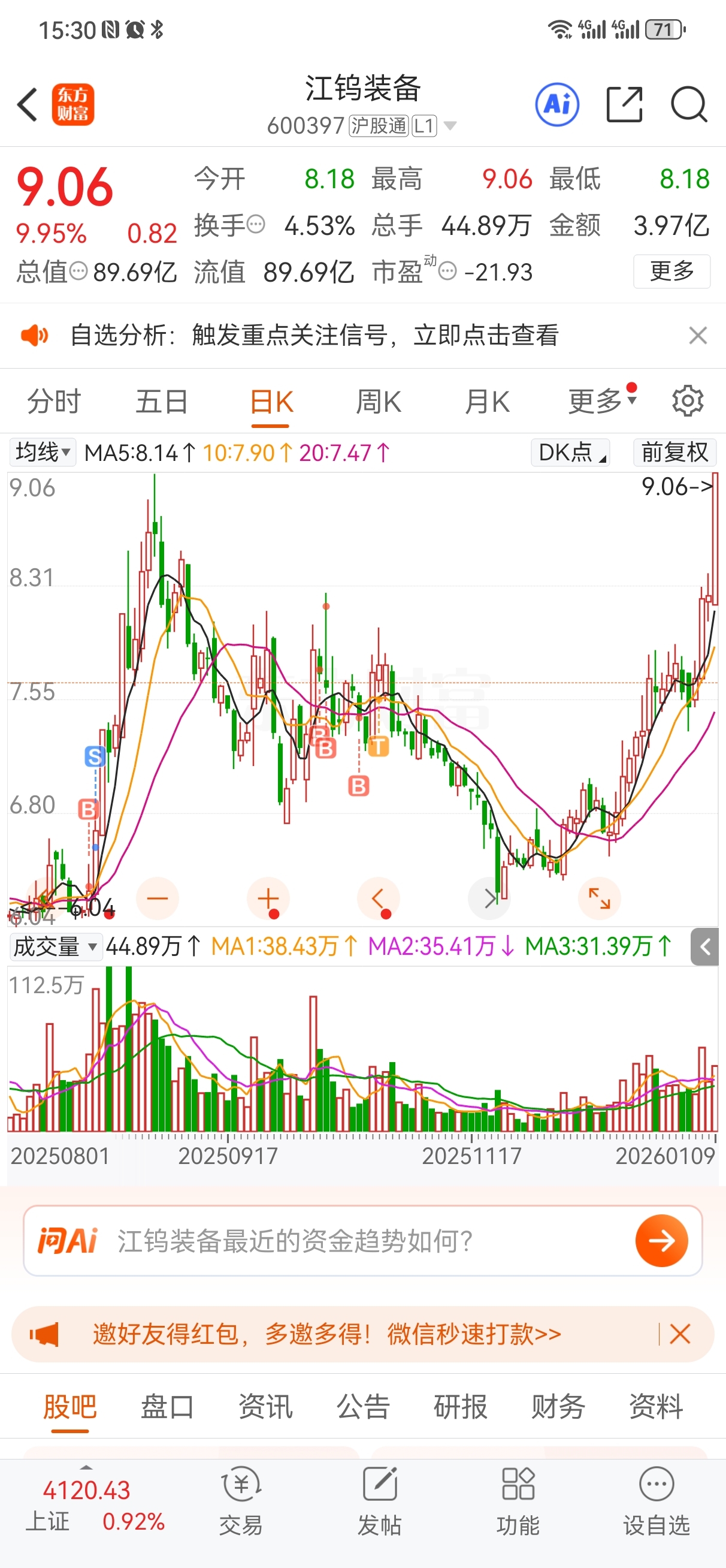 $江钨装备(SH600397)$ 股票玩的还是耐心