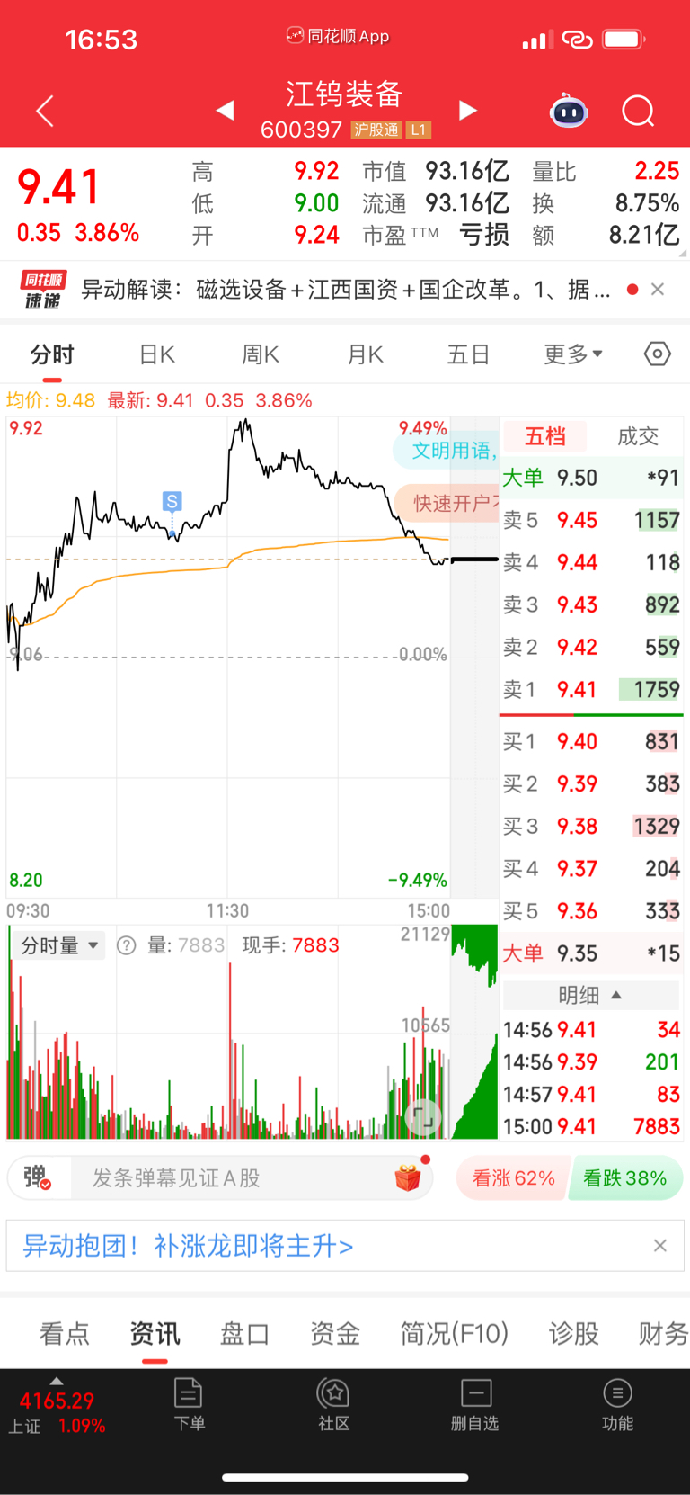 $江钨装备(SH600397)$ 卖后-懊悔-开心