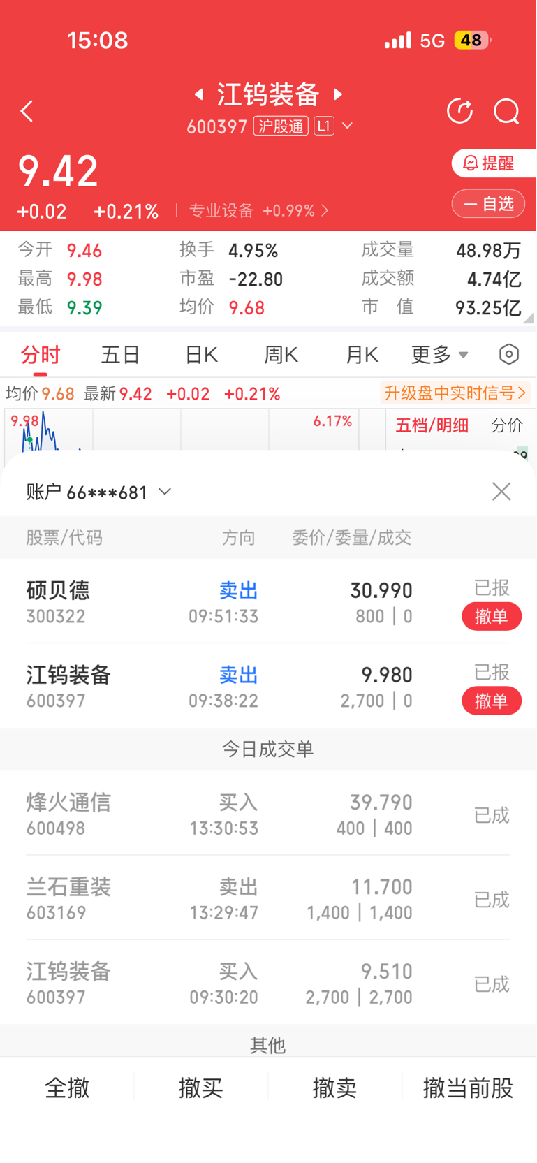 $江钨装备(SH600397)$