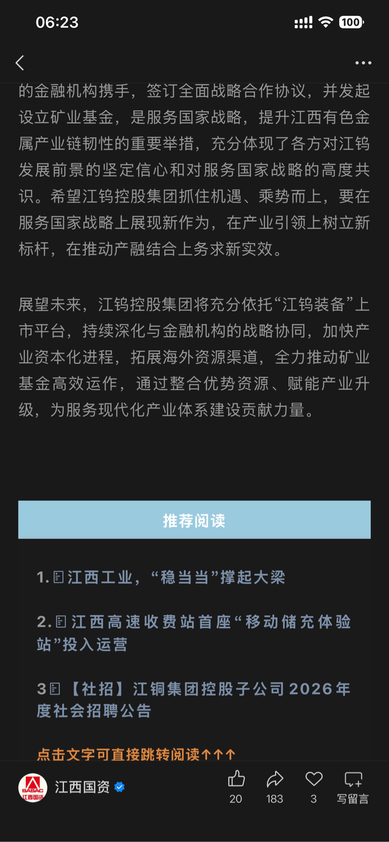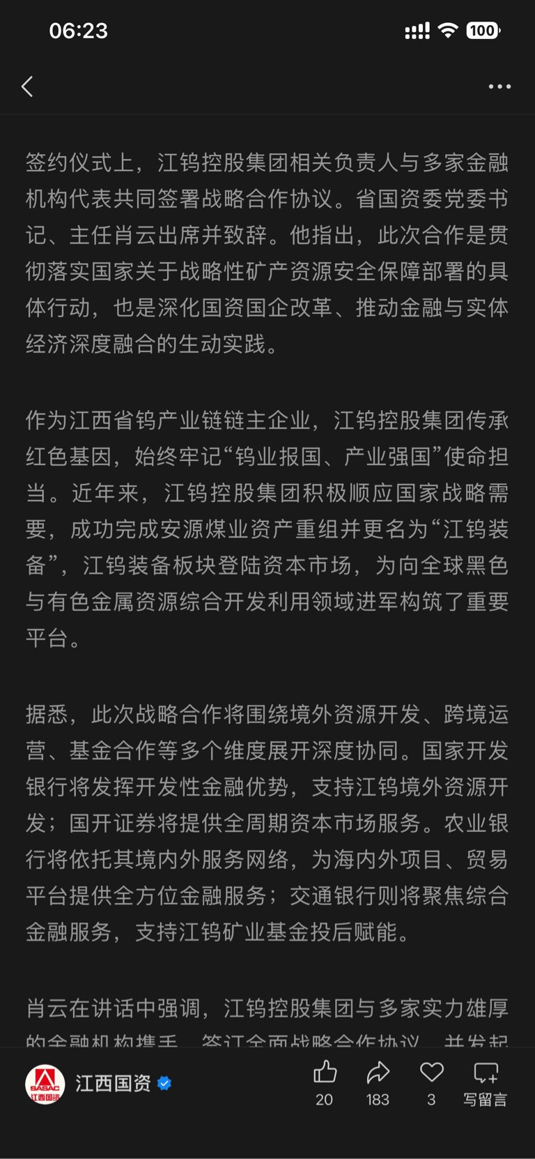 这是从江西省国资委官方网站看到的信息,里面阐述的很清楚,依托江钨装备为平台,开展