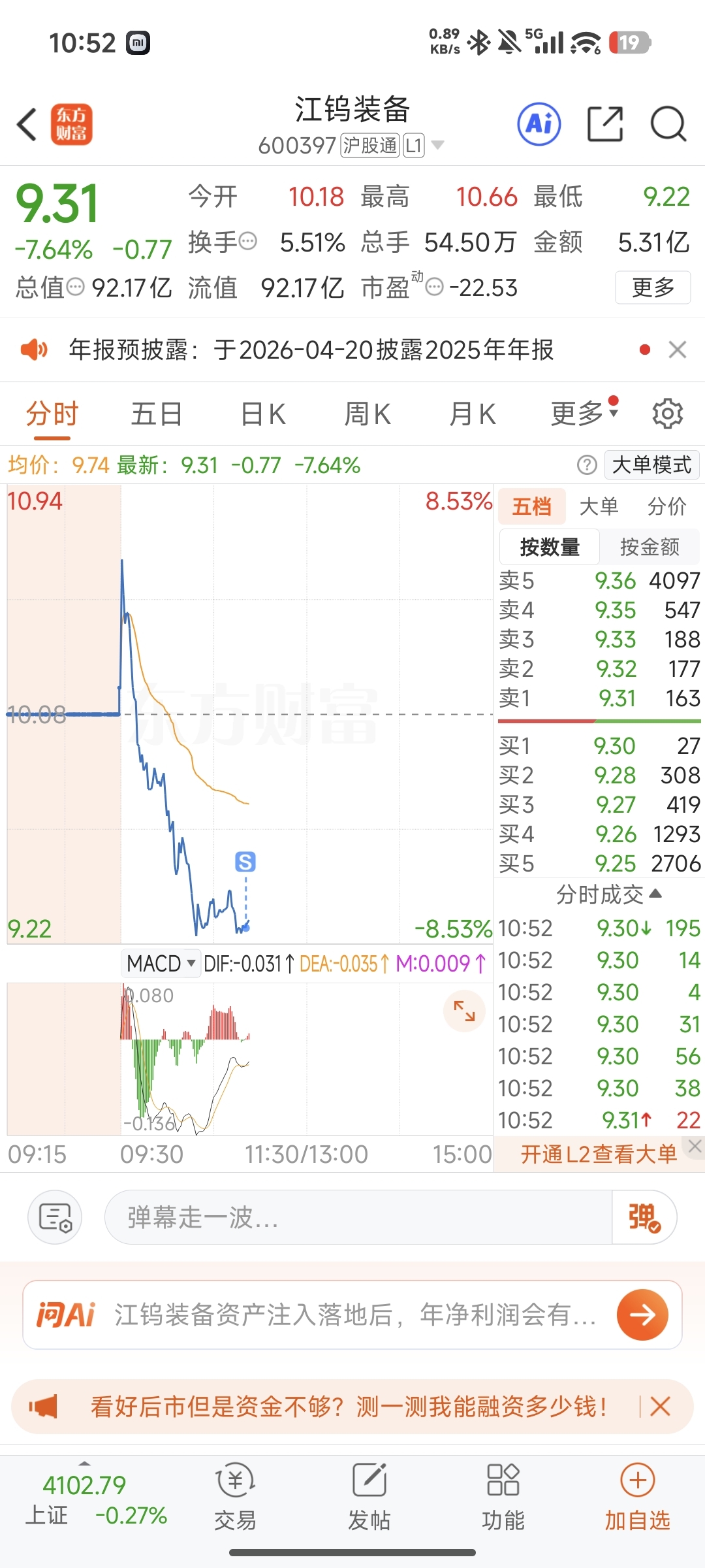 $江钨装备(SH600397)$ 永远不会再看一眼