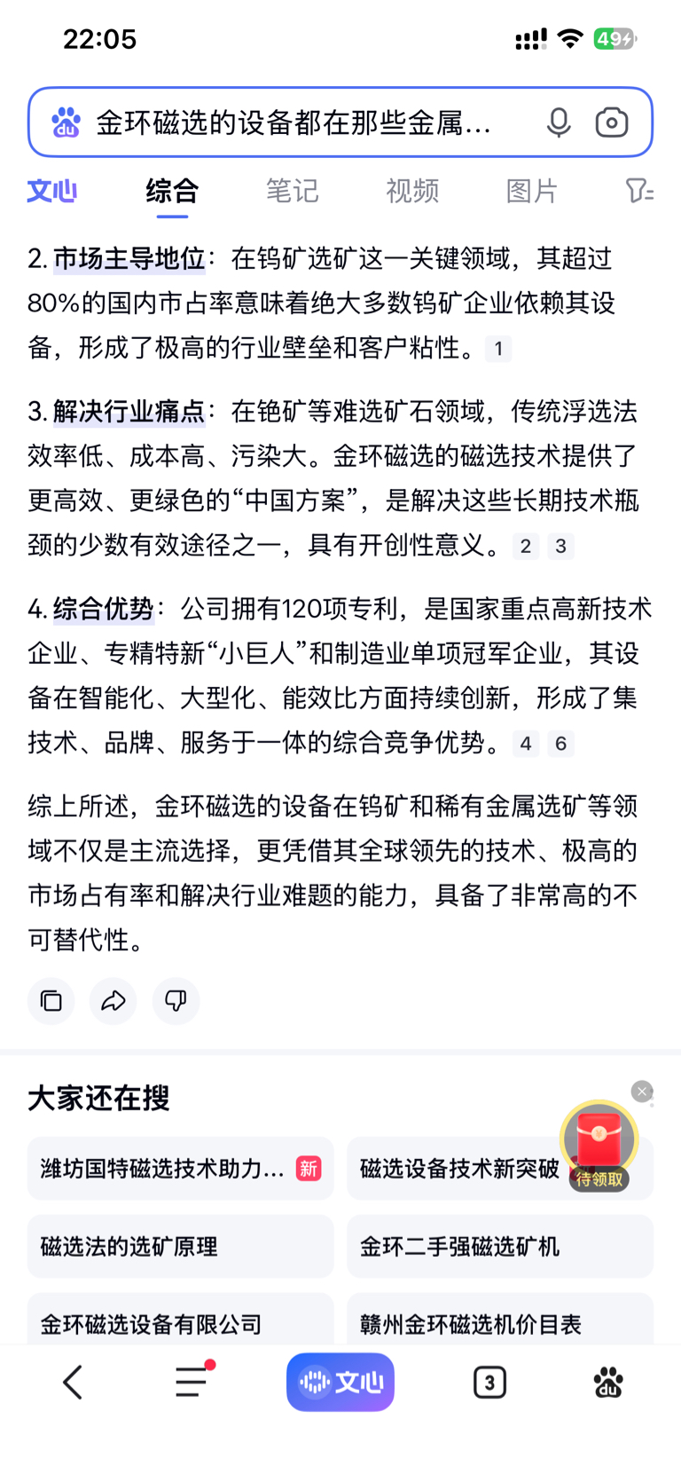 目前按照金环磁选注入江钨装备来看,金环磁选的概念就能给到150亿的市值,看看我给