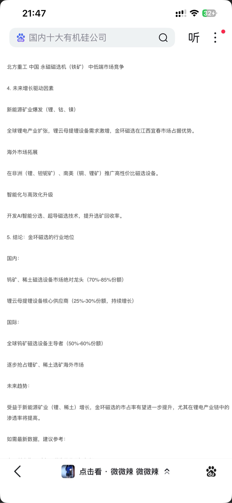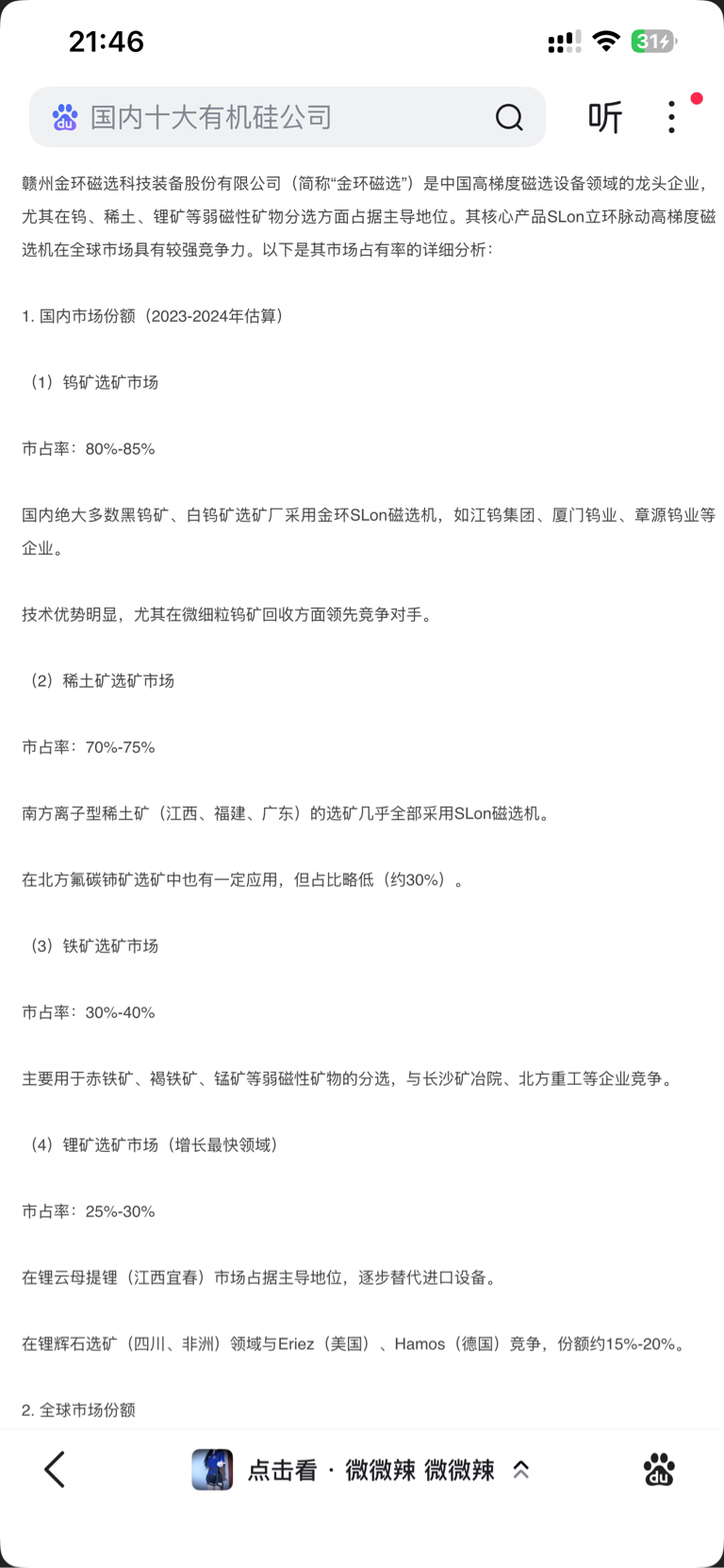 $江钨装备(SH600397)$ 目前按照金环磁选注入江钨装备来看,金环磁选的概念就能给到150亿的市值,看看我给大家发的金环磁选的概念,随着全球开始找矿的趋势来看,金环磁选矿机的概念也会有大的机会,再给予江钨控股全集团注入。
