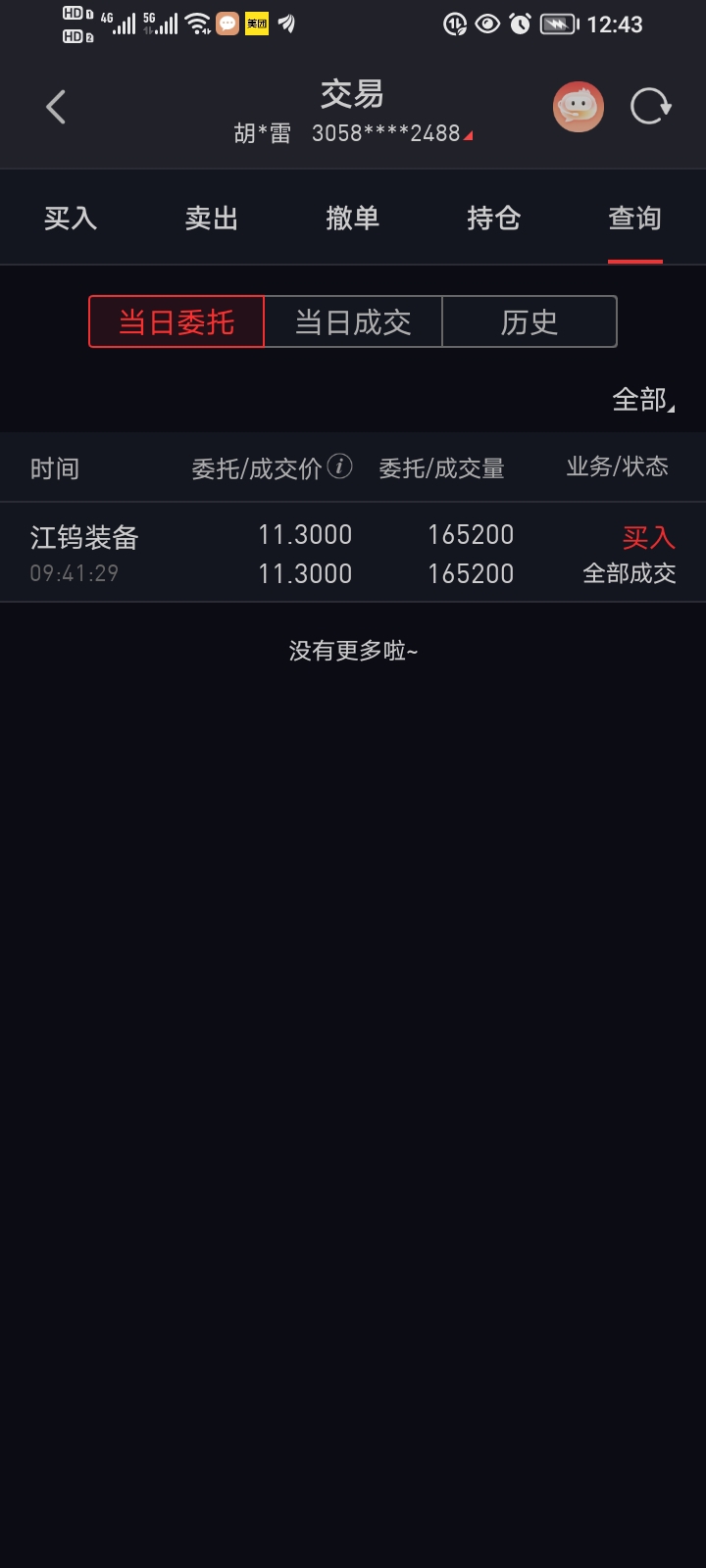 $江钨装备(SH600397)$ 昨天尾盘卖了,今天又买回来了