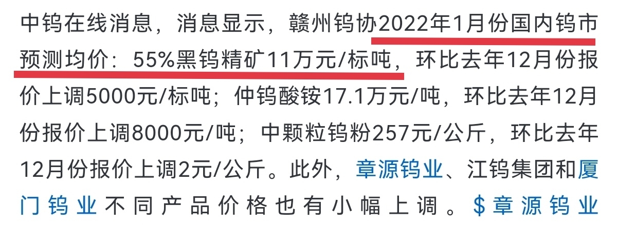 2022年江钨集团在管控时期都没有亏损,当时钨价格是11万/吨,2025年钨价格