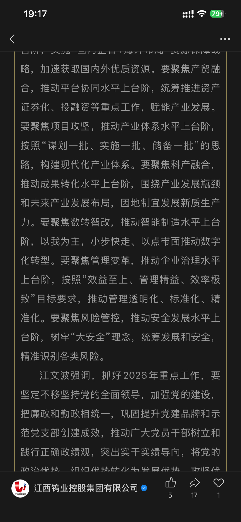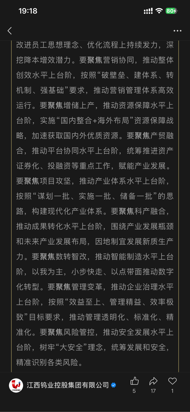 $江钨装备(SH600397)$ 这里面最重要的一句话就是,统筹推进资产证券化。按理来说金环磁选已经上市,应该大力发展金环磁选的业务,上市公司应该说金环磁选,但是,这里提的是统筹推进资产证券化,那就是集团整体上市的工作统一安排,走到这里大家还不清楚吗,这是最明确的整体上市规划安排,买入、持有,等待就是最好的操作。