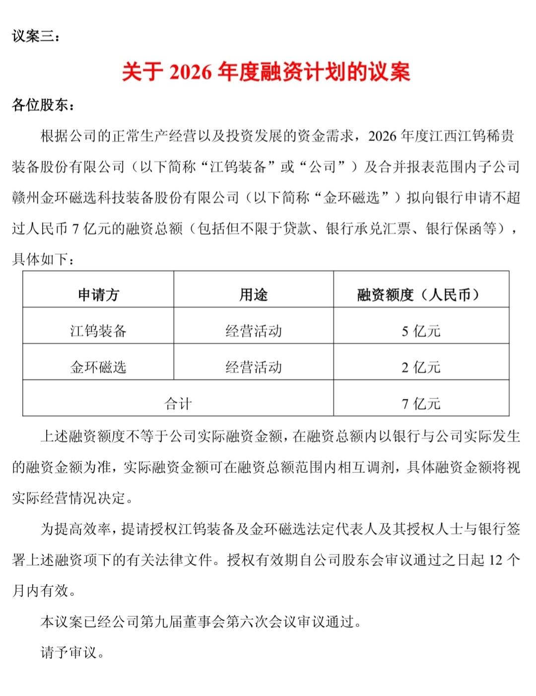 2026年度融资计划