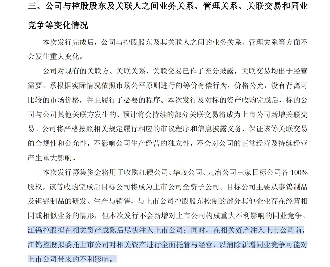 $江钨装备(SH600397)$ 昨天的增发预案 集团策略明牌:成熟一批注入一批,有注入前交给上市公司装备托管。