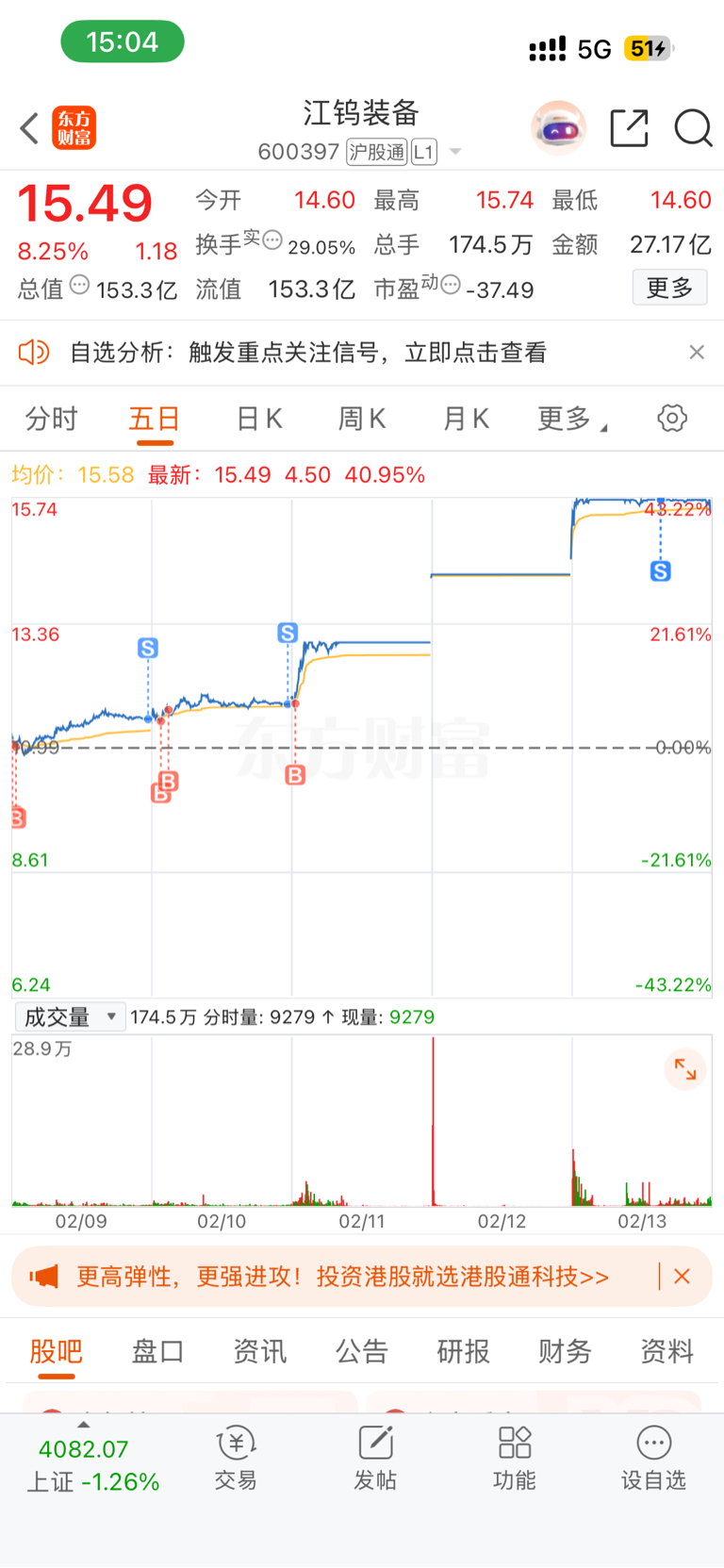 $江钨装备(SH600397)$ 感谢主力的红包,从一月底买入,做了半个月,收获满满