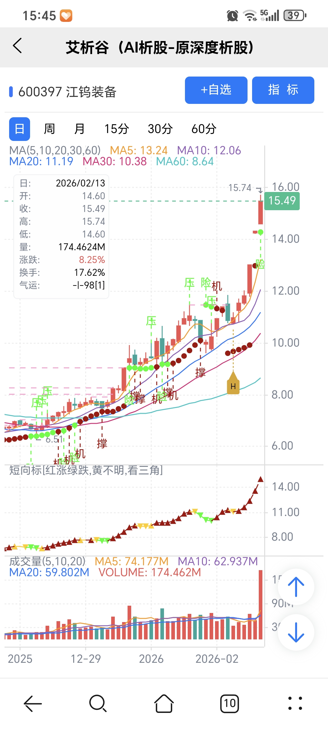 风险:股价下穿艾短波或红变绿、绿字。
