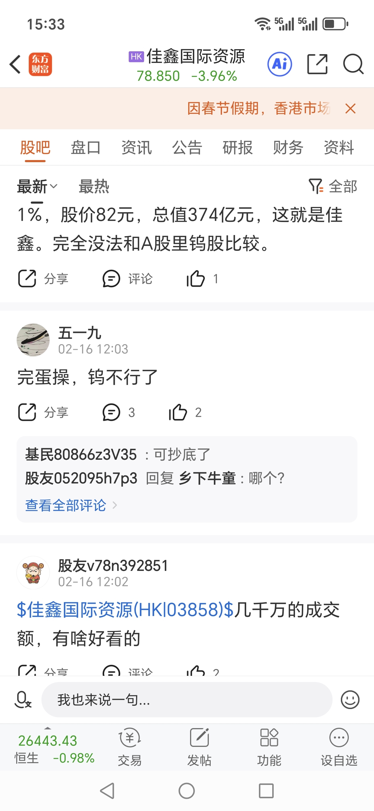 温馨提示: 1.根据《证券法》规定,禁止编造、传播虚假信息或者误导性信息,扰乱证券市场;2.用户在本社区发表的所有资料、言论等仅代表个人观点,与本网站立场无关,不对您构成任何投资建议。用户应基于自己的独立判断,自行决定证券投资并承担相应风险。《东方财富社区管理规定》
