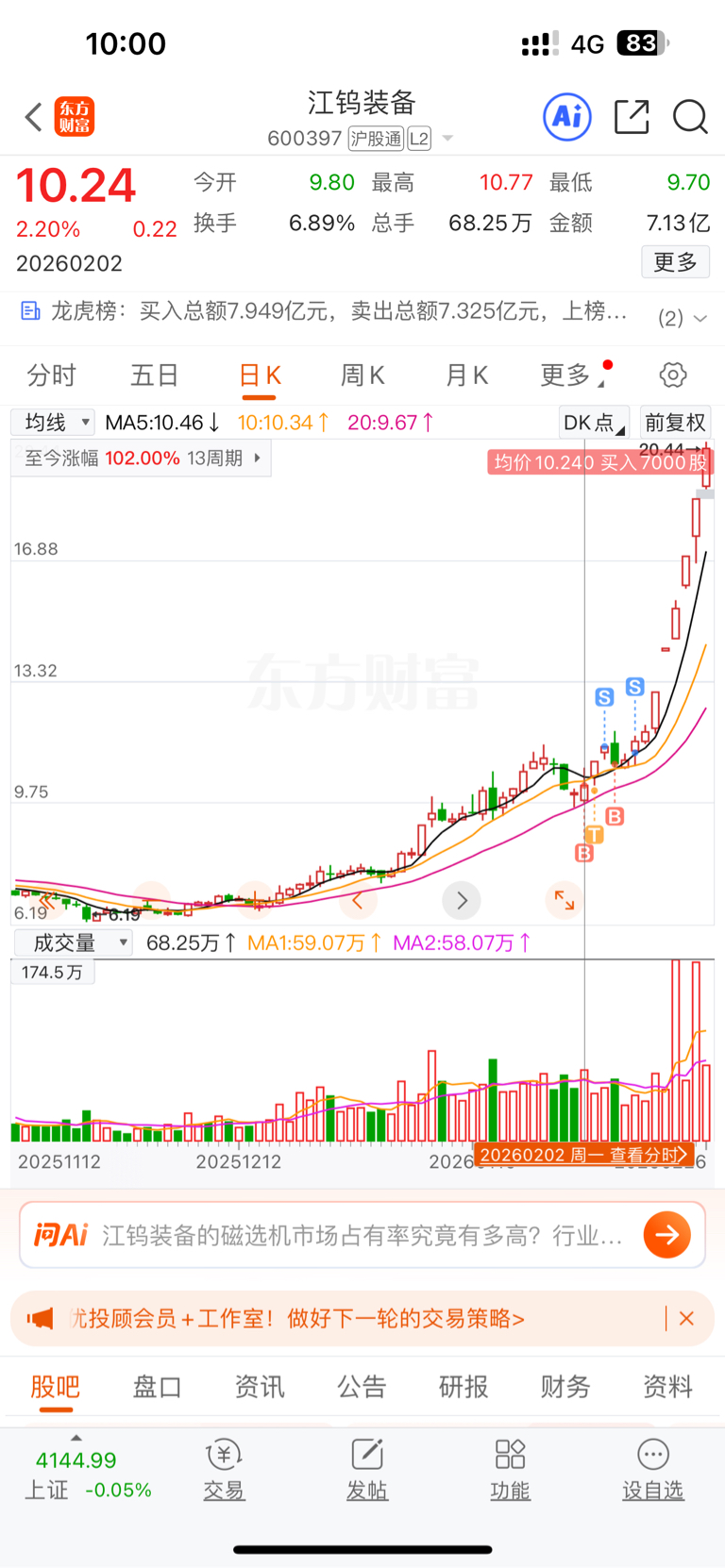 温馨提示: 1.根据《证券法》规定,禁止编造、传播虚假信息或者误导性信息,扰乱证券市场;2.用户在本社区发表的所有资料、言论等仅代表个人观点,与本网站立场无关,不对您构成任何投资建议。用户应基于自己的独立判断,自行决定证券投资并承担相应风险。《东方财富社区管理规定》