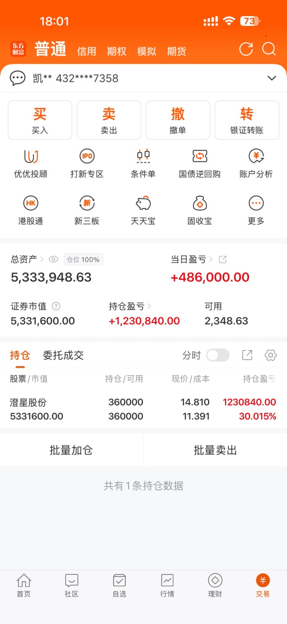 交易中捕捉市场契机。熊市不是亏钱借口,技术选股才能从亏到赚再翻倍。我敢单吊,就是因为选对票就不会亏,稳定盈利、月月翻倍是常态。