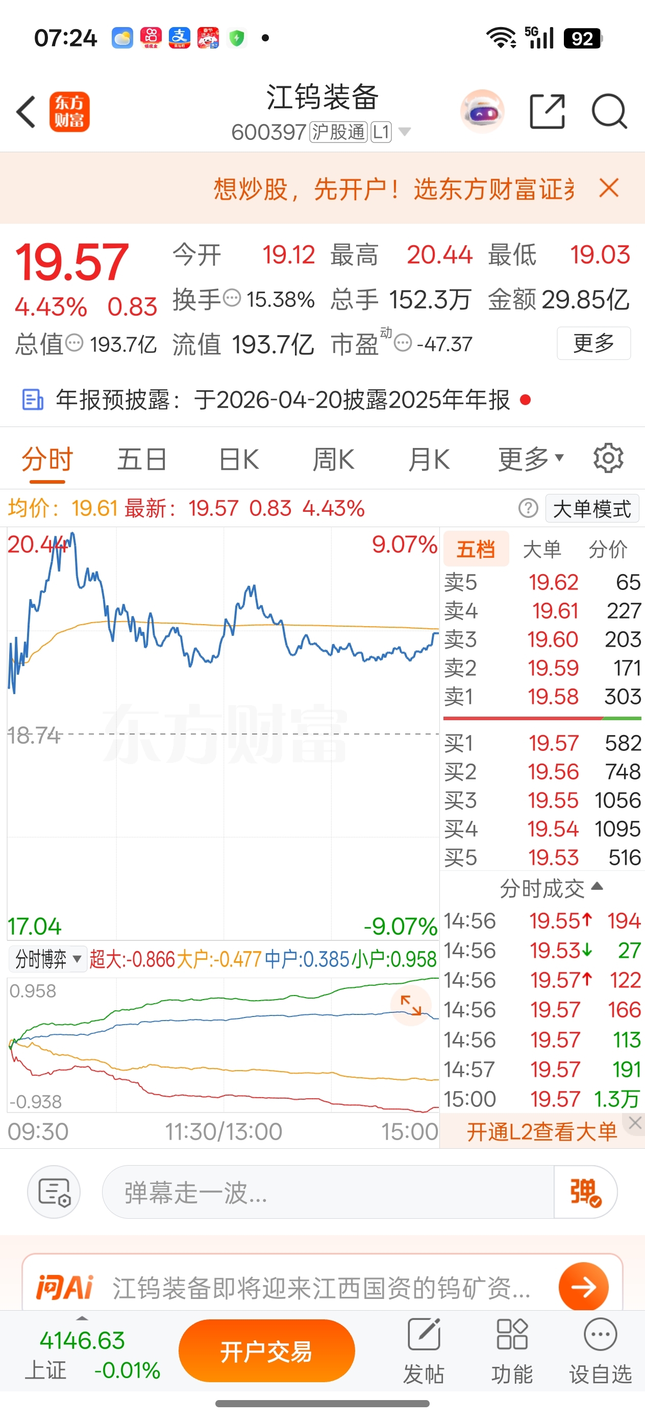 $江钨装备(SH600397)$