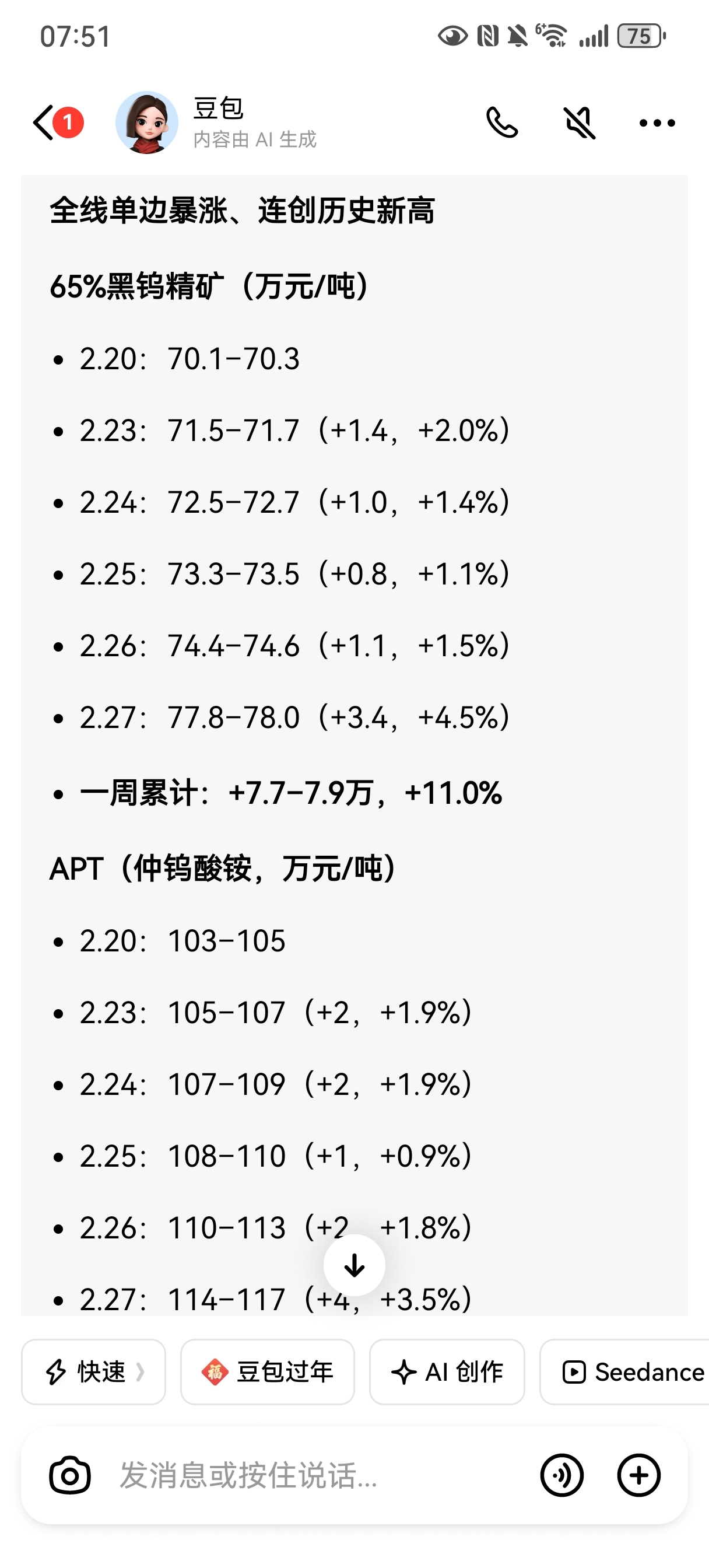 $江钨装备(SH600397)$ 黑钨精大涨4.5%