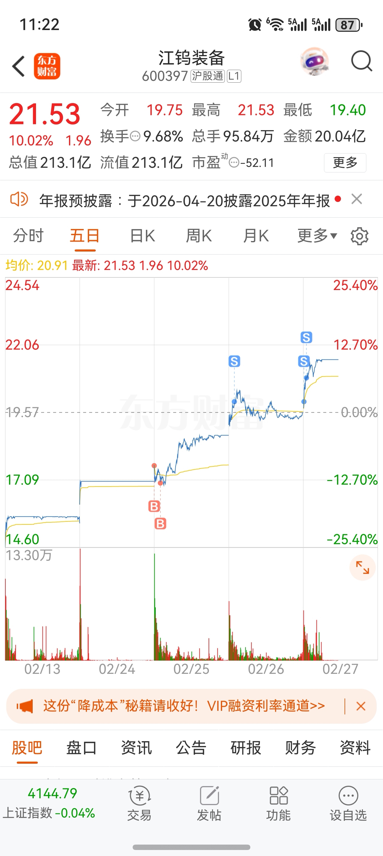 $江钨装备(SH600397)$ 终于把白银亏的一千多赚回来了一点,留下的发财