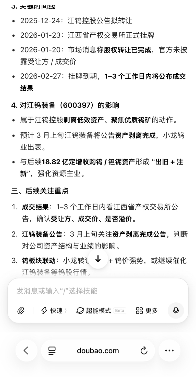 $江钨装备(SH600397)$ 小龙钨业的转让,清退不良资产,为注入做好准备。