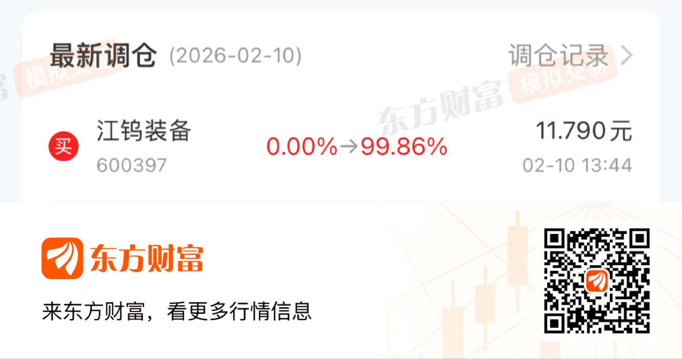 $江钨装备(SH600397)$ 幸好是模拟仓,不然让我发财了,半年工资