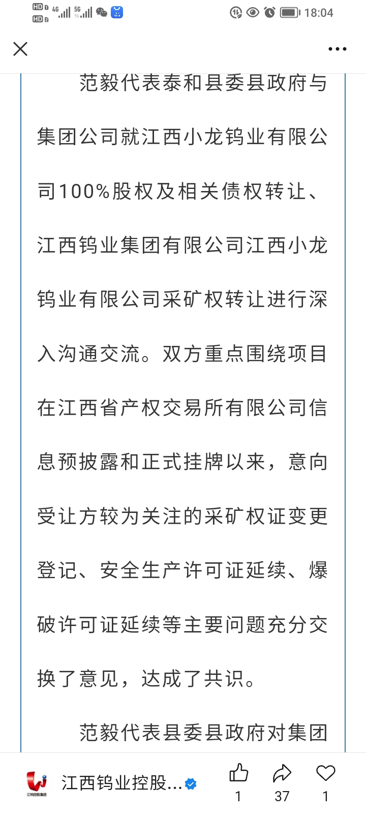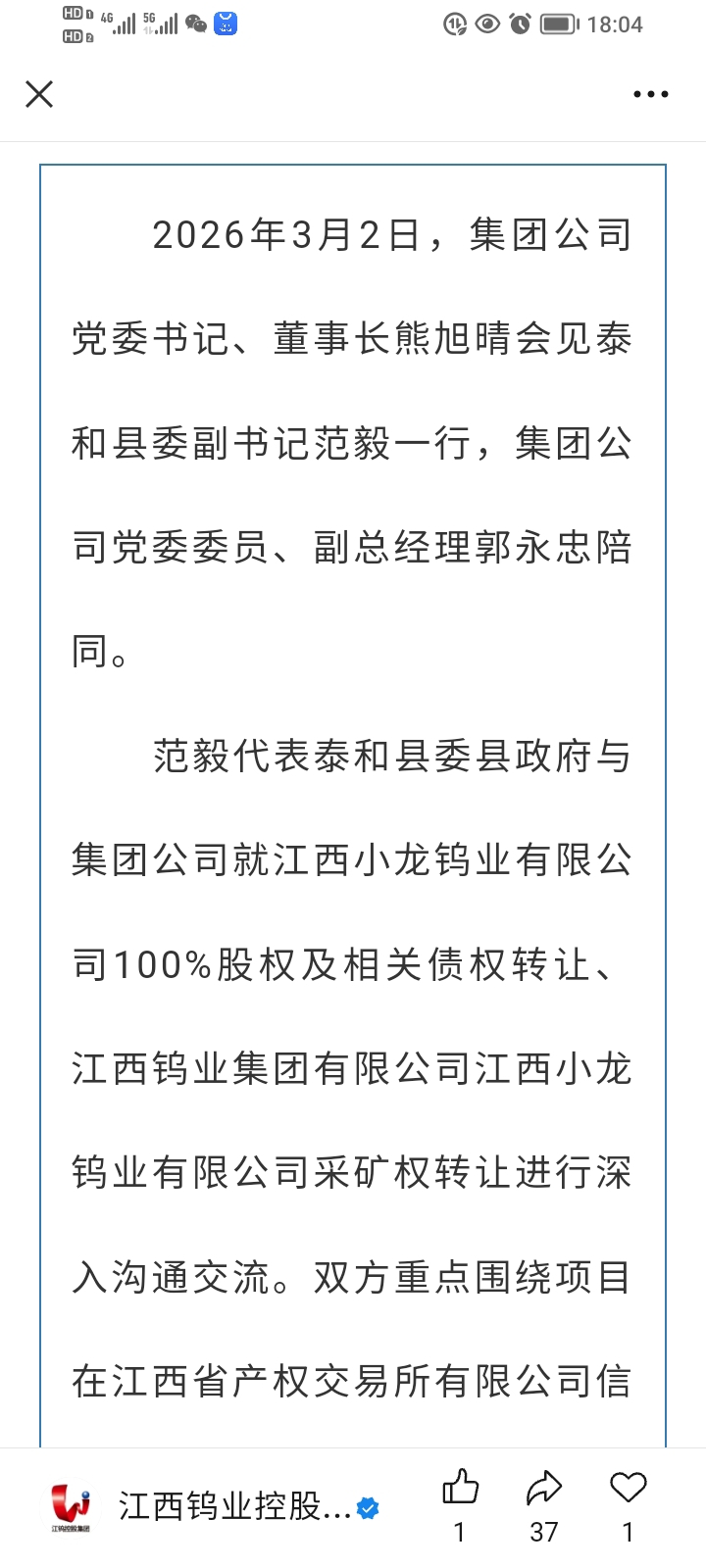 $江钨装备(SH600397)$