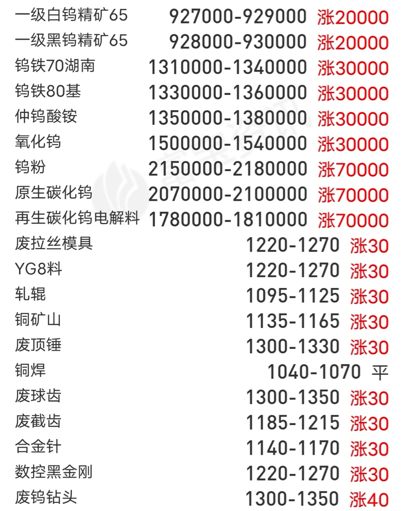 又涨了两万,马上到100万,二战期间钨价比美黄金还贵一些,还得继续,早着呢