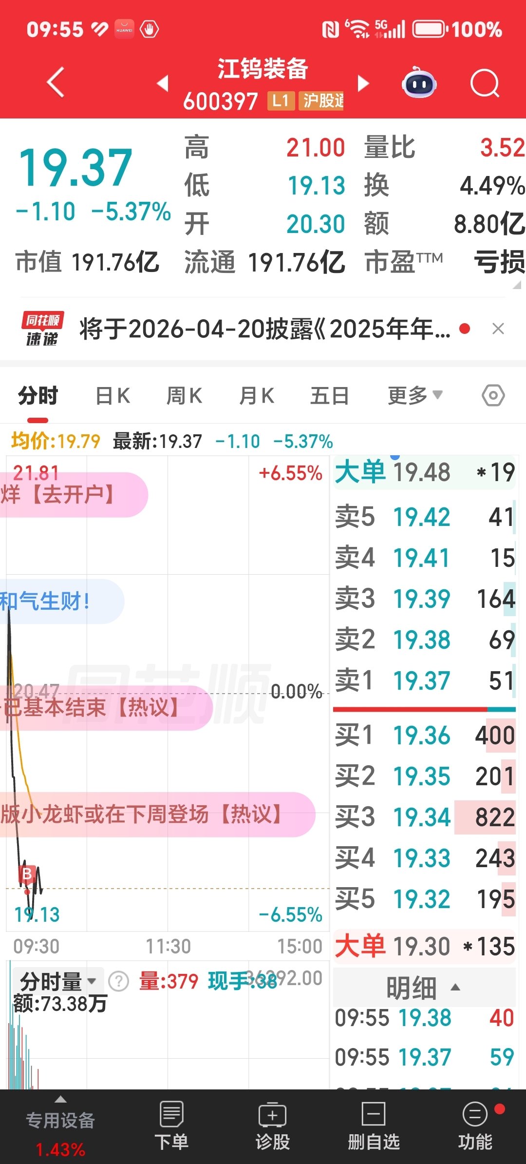 $江钨装备(SH600397)$ 继续 加仓、加仓…
