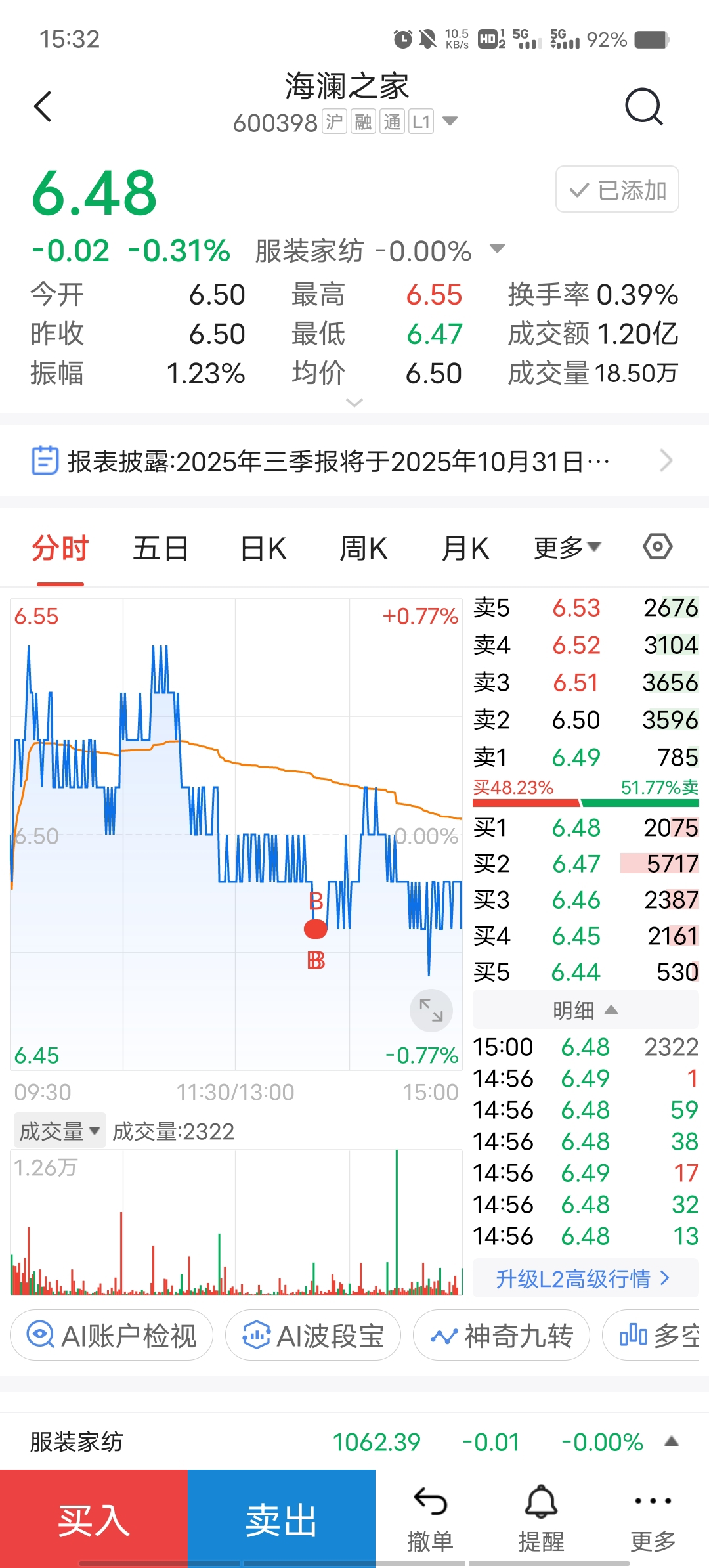 $海澜之家(SH600398)$ 又挣了一分,又是血赚一分钱的一天