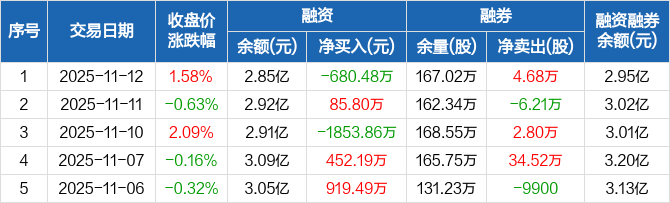 海澜之家:融资净偿还680.48万元,融资余额2.85亿元(11-12)