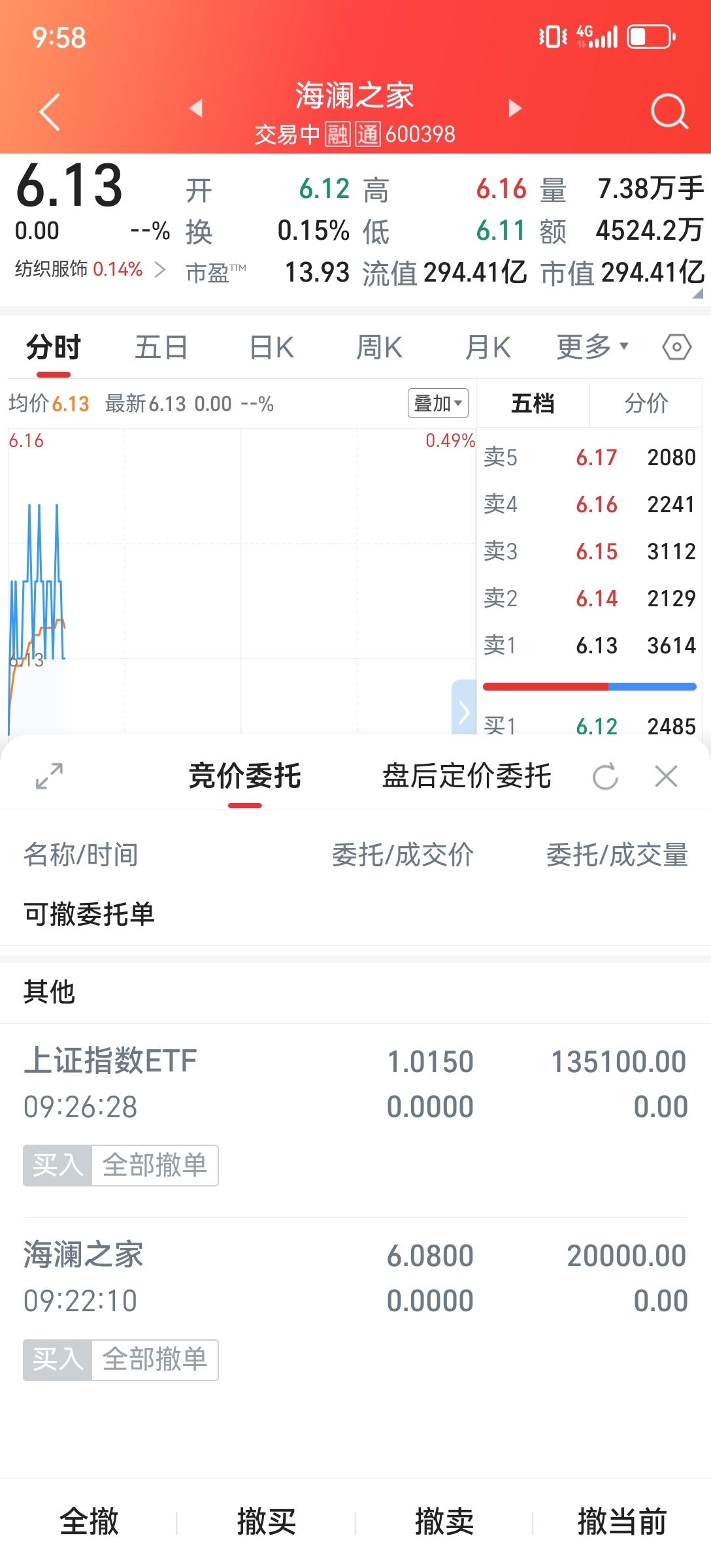 $海澜之家(SH600398)$ 撤单,缓跌就不买了,哈哈哈哈
