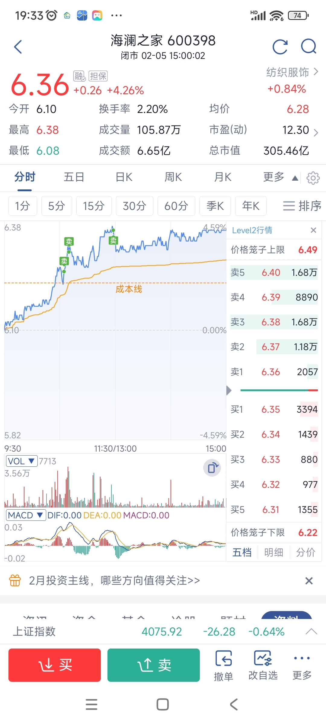 $海澜之家(SH600398)$ 等6.1左右低吸,主力被我摸的透透的