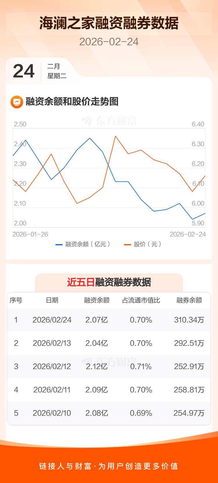 交易所最新数据显示,海澜之家于2026年2月24日获融资买入1852.88万元,融资偿还1526.33万元,当日融资净买入326.55万元。目前,该股融资余额2.07亿,占流通市值比例为0.70%。