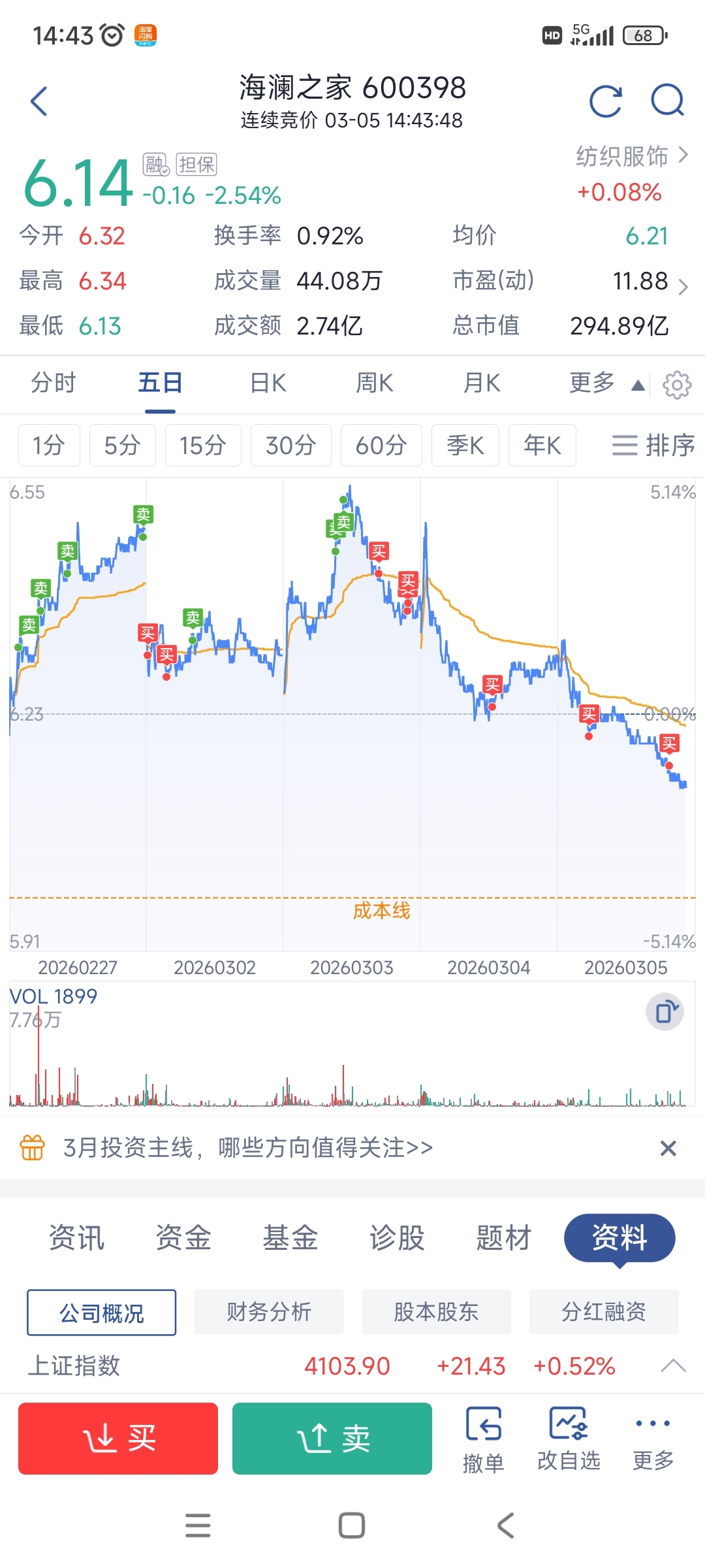 $海澜之家(SH600398)$ 差不多了,买,买,买,等待下波6.5