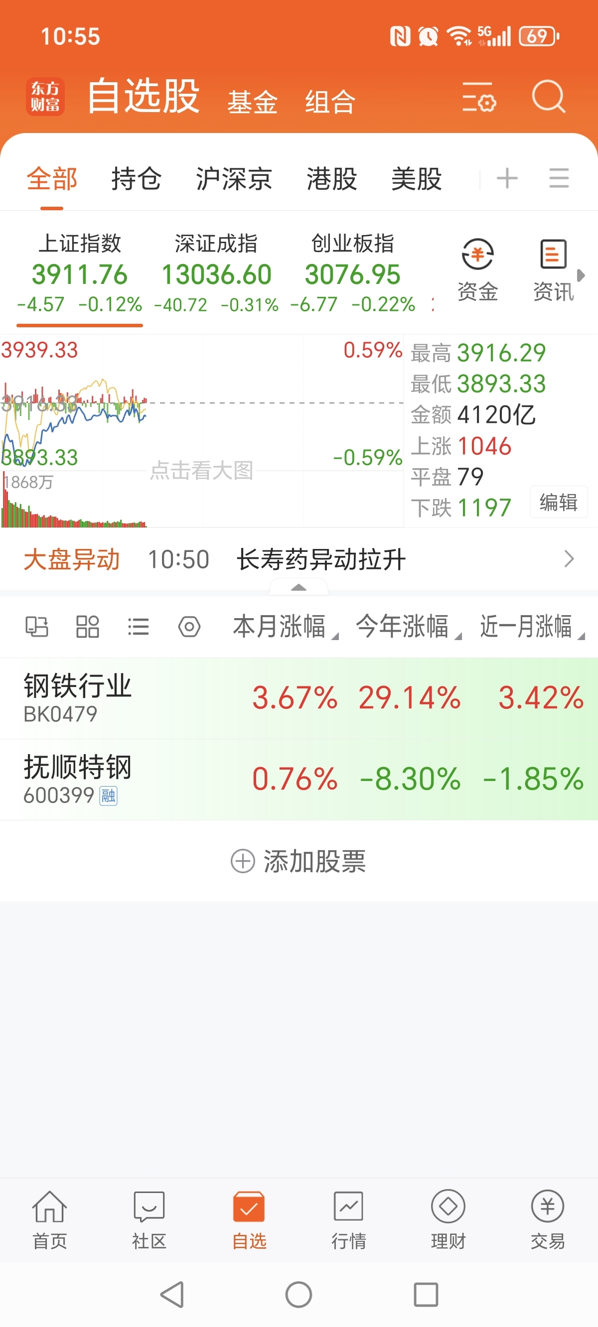 $抚顺特钢(SH600399)$ 拉垮呀,截止10点55分,好不容易涨一次,双从5.58%下到2%以下,